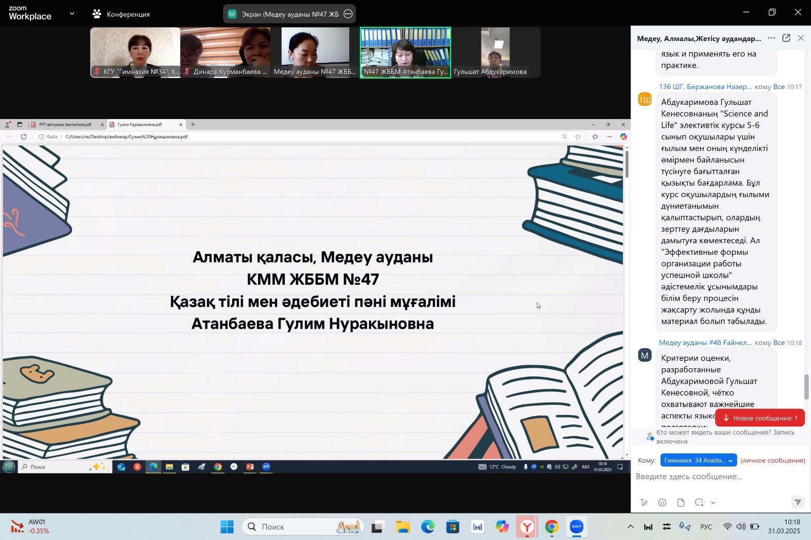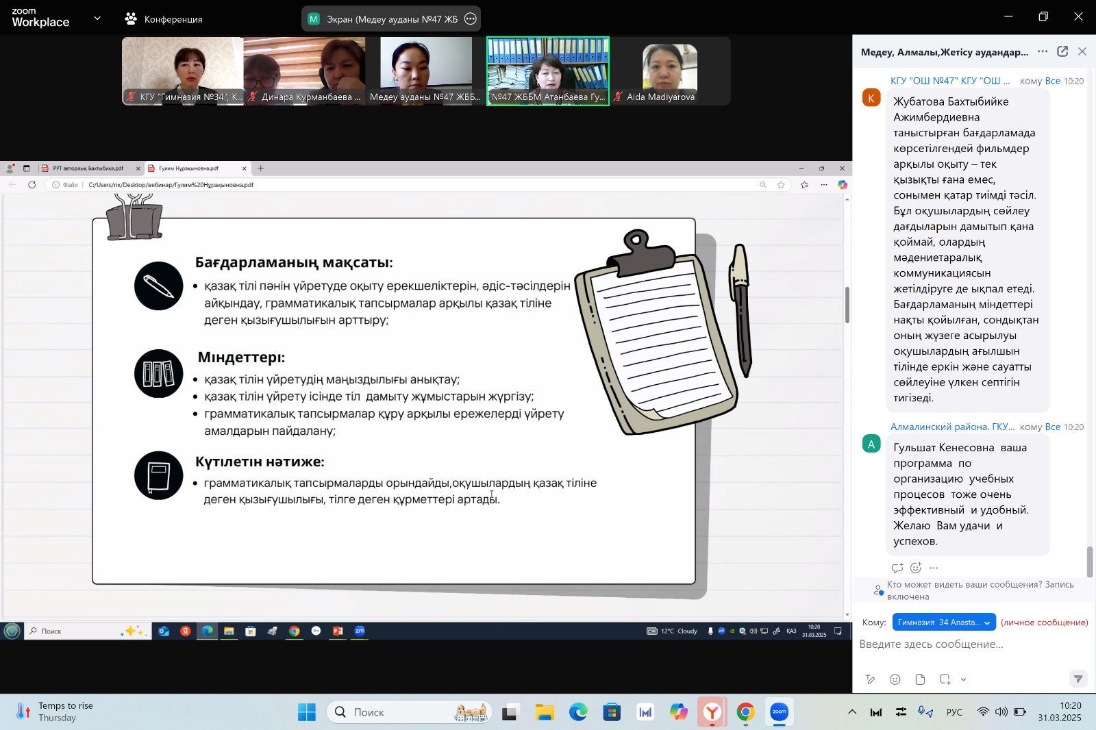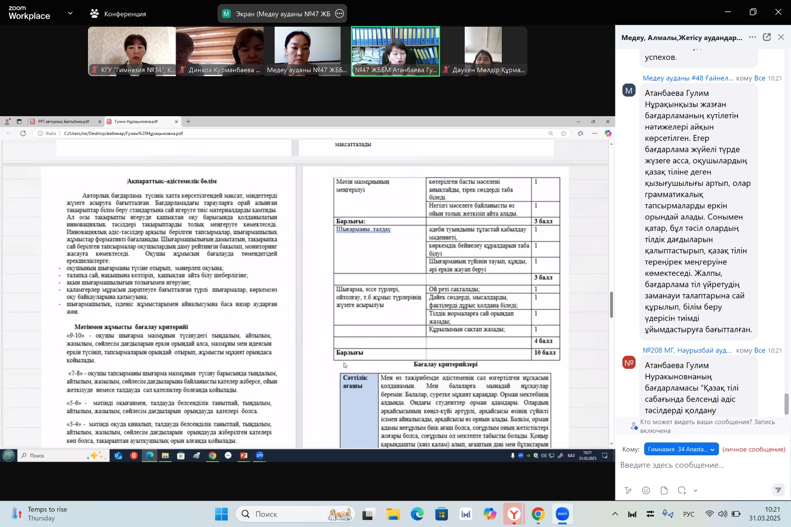 «Педагог-зерттеуші» санатына тапсыратын/растайтын қазақ тілі мен әдебиеті пәні педагогінің педагогикалық тәжірибесін Алматы қаласына тарату туралы вебинар