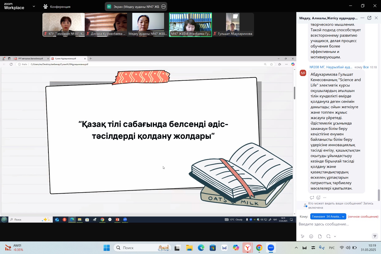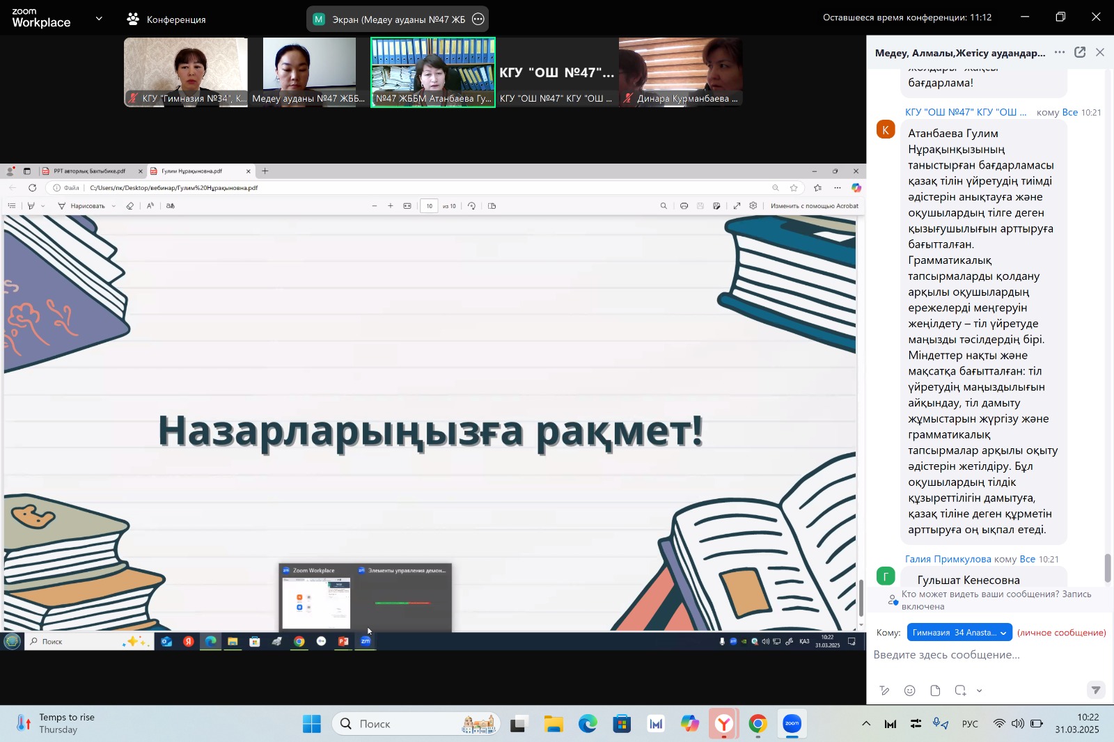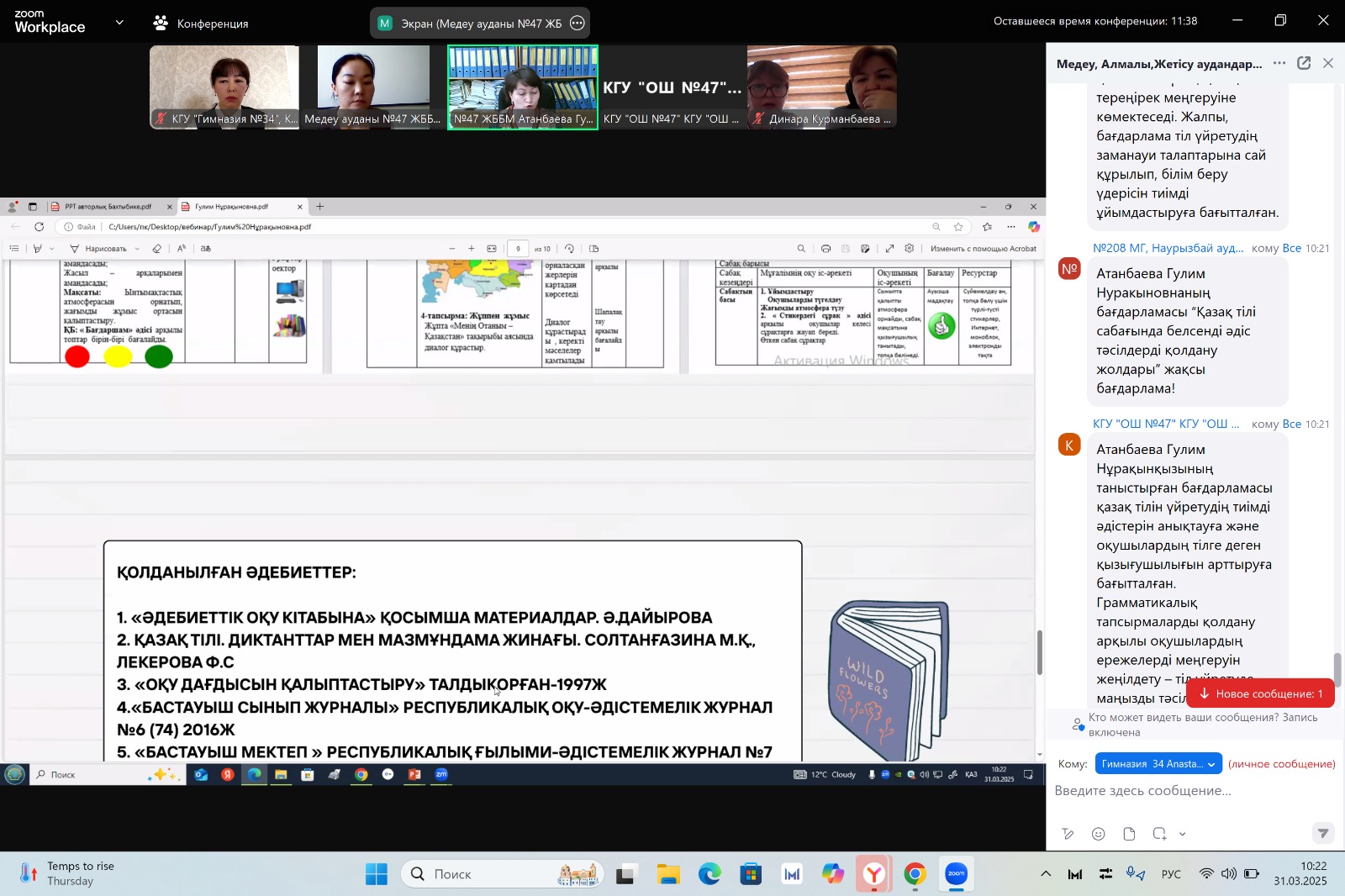 «Педагог-зерттеуші» санатына тапсыратын/растайтын қазақ тілі мен әдебиеті пәні педагогінің педагогикалық тәжірибесін Алматы қаласына тарату туралы вебинар