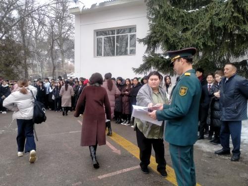 2023 жылдың 16-ші ақпанында сейсможаттығу өткізілді Мақсаты: мектептің дайындық дәрежесін анықтау және төтенше жағдайлардың алдын алу.Сейсможаттығуға мектептің білім алушылары мен мектеп ұжымы қатысты. Қатысушыларға өрт, су тасқыны, қаркөшкіні, жер сілкінісі қауіп төнген кездегі іс - қимыл тәртібі жайында айтылды.