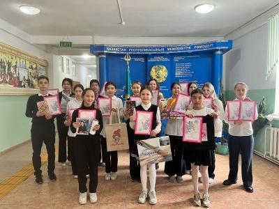 24 март 2023 0 1 2 3 4 5 "Оқуға құштар мектеп " 2023 оқу жылының қаңтар, ақпан айларында "Оқуға құштар мектеп" жобасы аясында оқушылар арасында әдеби кітап оқудан байқау болып өтті. Байқауға белсенді түрде қатысқан оқушылар мақтау қағазымен бірге сыйлықтарға ие болды.