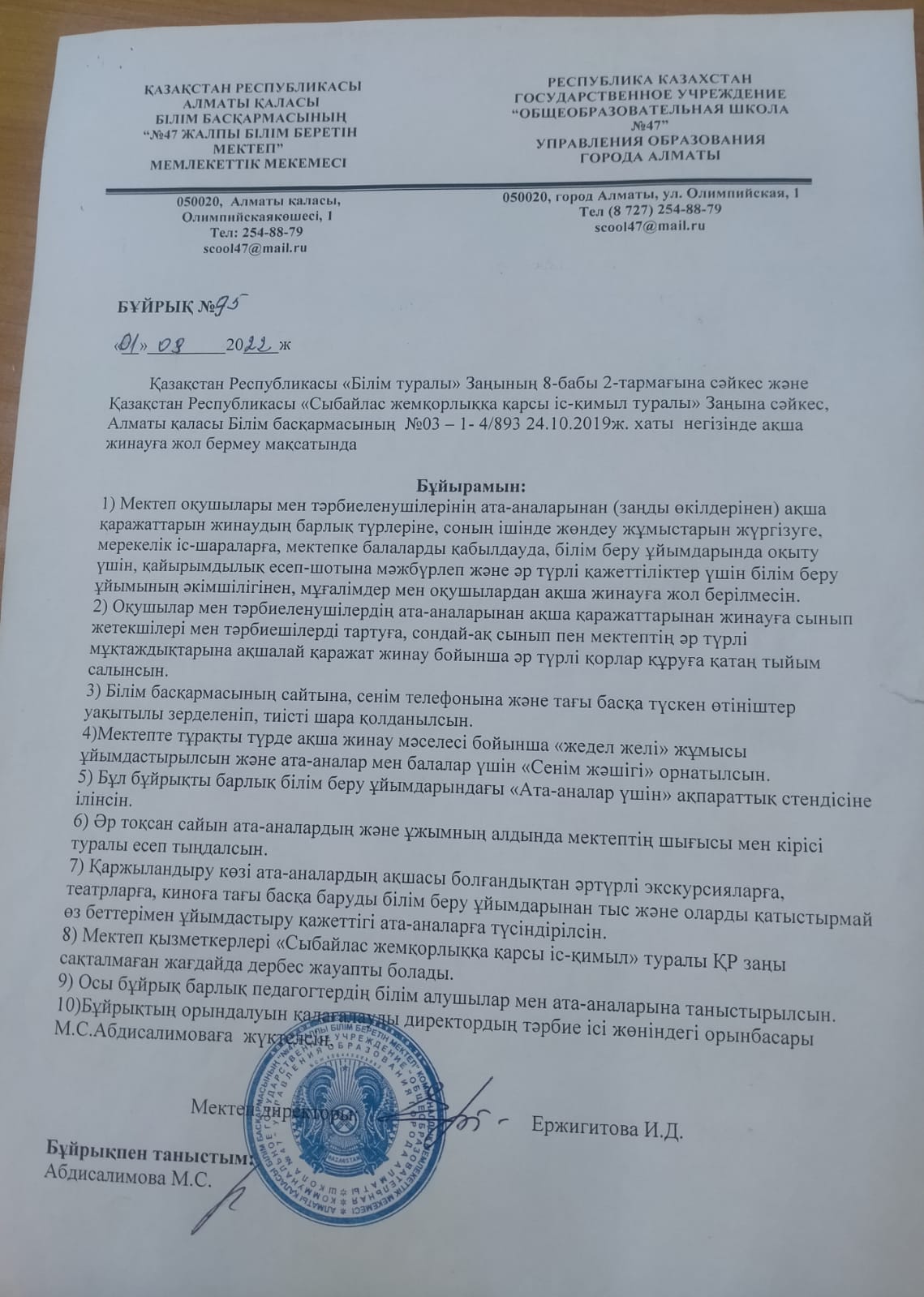 02 сентябрь 2022 0 1 2 3 4 5 БҰЙРЫҚ "Сыбайлас жемқорлыққа қарсы іс-қимыл туралы" БҰЙРЫҚ № 95 01.09.2022ж.