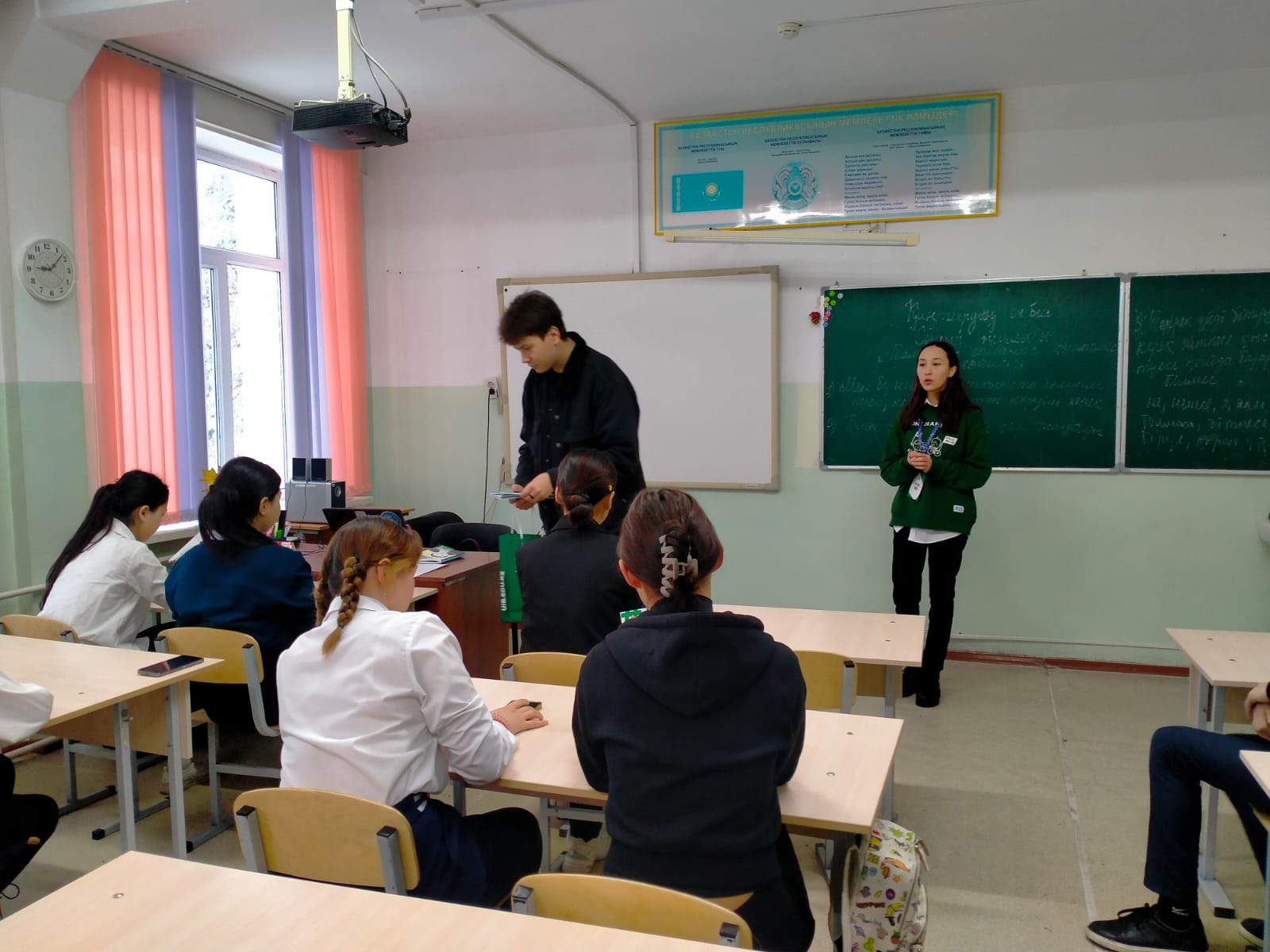 09 январь 2024 0 1 2 3 4 5 Кәсіби бағыт бағдар беру жұмысы 9-11 сынып оқушылары арасында кәсіптік бағдар беру мақсатында: жоғарғы оқу орындарынан, колледждерден мамандар келіп, кәсіптік бағдар беру жұмысын жүргізді.