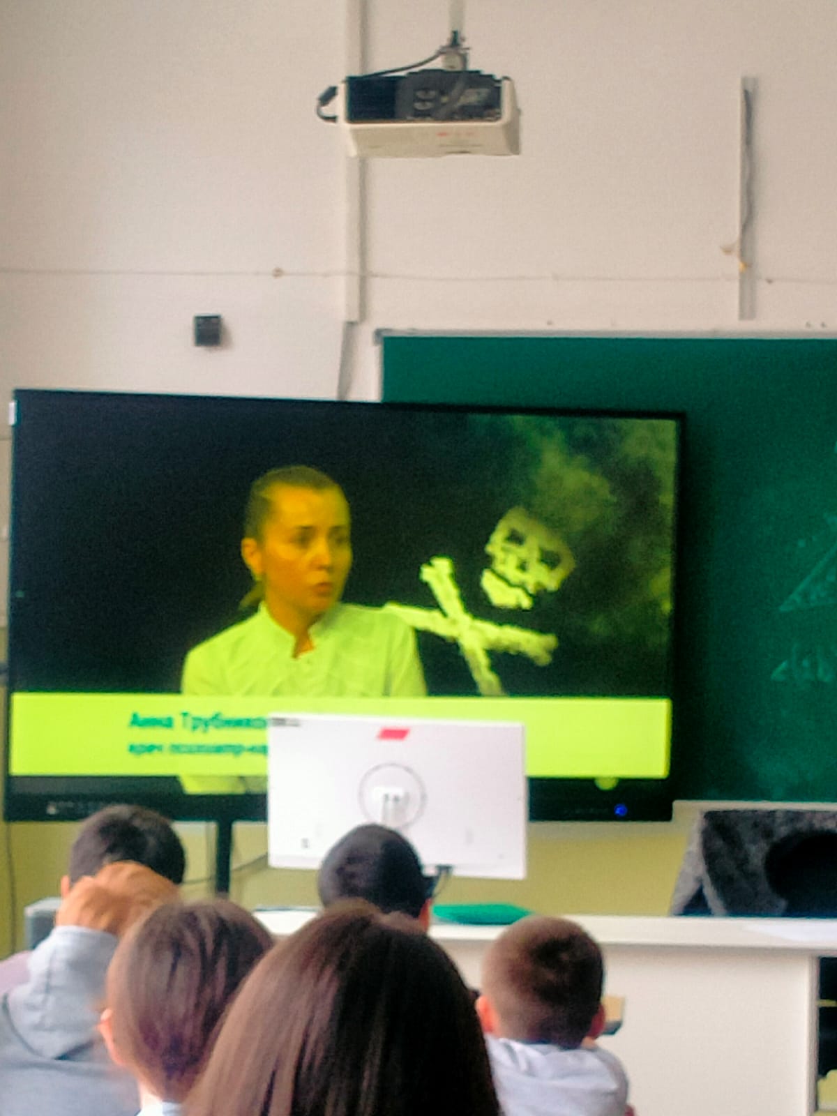 05.11.2024ж. Жасөспірімдер арасында ішімдік, электронды сигаретті пайдаланбаудың алдын алу мақсатында Алматы қалалық наркологиялық медико-әлеуметтік сауықтыру орталығының дәрігер-наркологы А.А.Трубникова мен 6-10 сынып оқушылары арасында кездесу болып өтті. Дәріс барысында, алкоголь - адамды уландыратын зат екендігін және ол әртүрлі химиялық қоспалардан тұратындығын, егер оны көп мөлшерде пайдалансаң, адам ағзасын біртіндеп уландыра бастайтындығын баса айтып өтті. Алкоголь дәм сезу мүшелеріне, ас қорыту мүшесіне, нерв жүйесіне, миға әсер ететіндігін, көп мөлшерде қолданса, адам өліпте кететіндігін ескертті.
