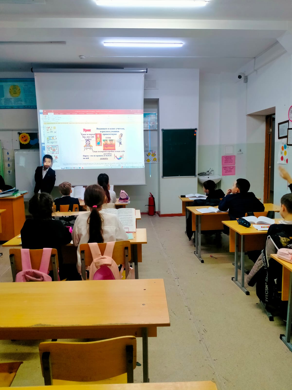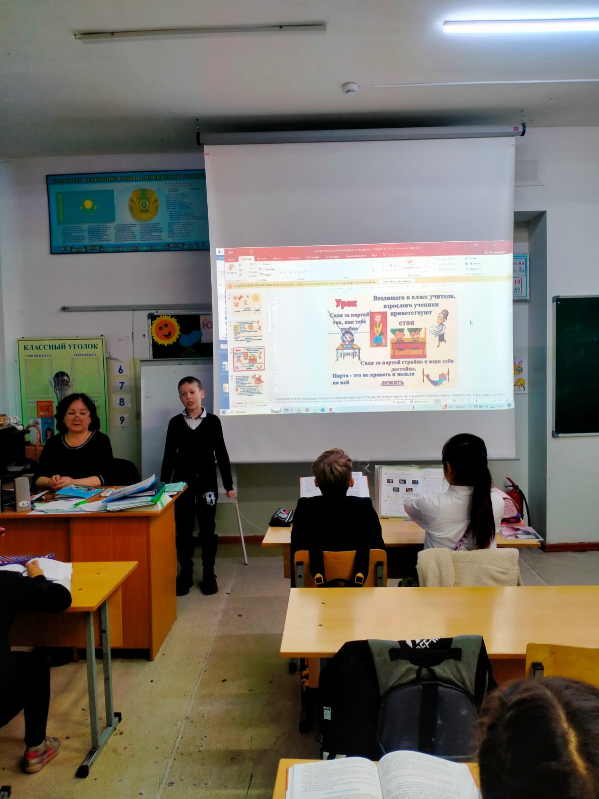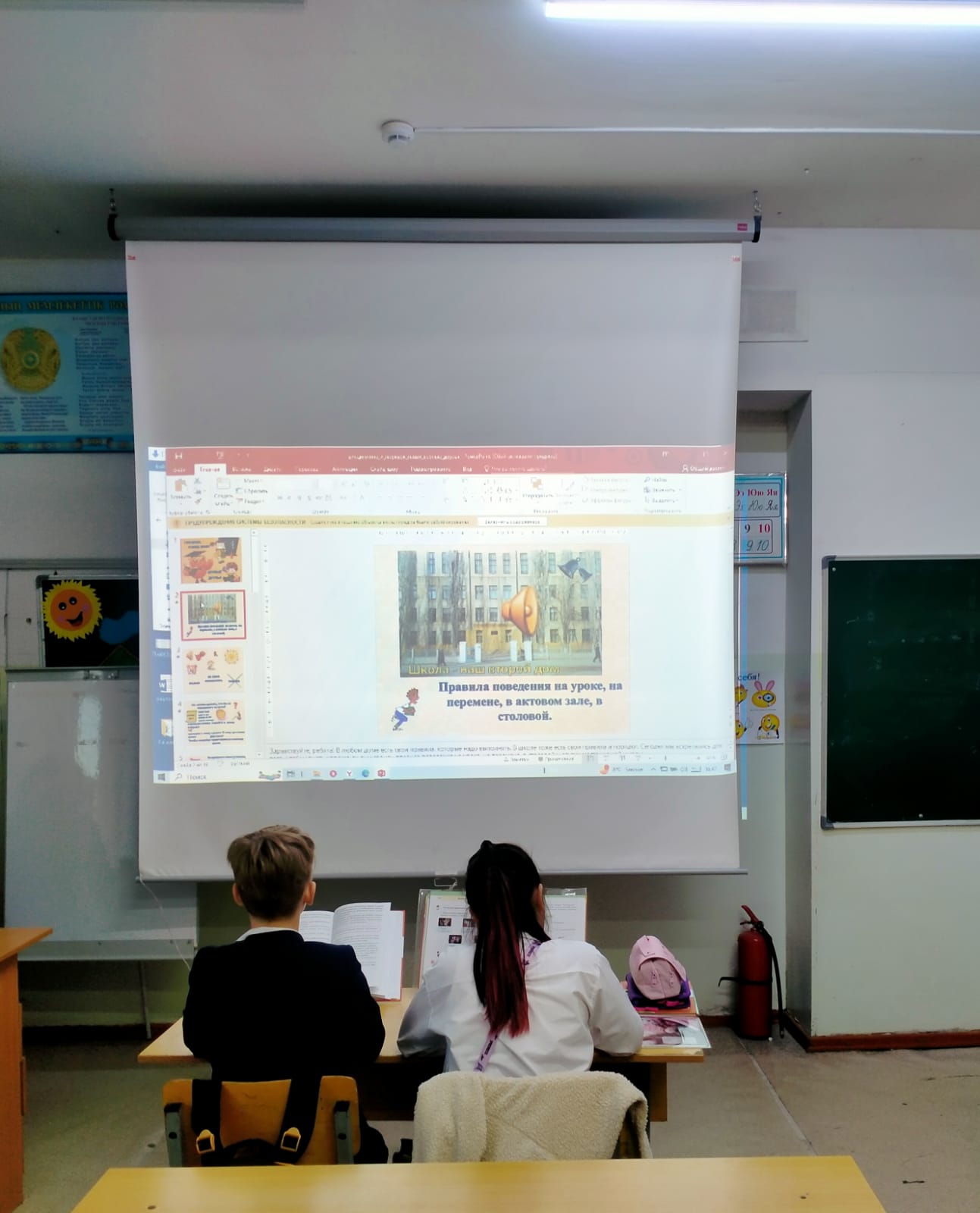 «Заң және Тәртіп» құндылығы «Сынған кездердегі алғашқы медициналық көмек. Қан аққан кездегі алғашқы медициналық көмек» ЖЖЕ. Қауіпсіздік сабағы (10 минут) «Қиын кезеңдердегі достық: жанжалда досыңызға қалай қауіпсіз көмектесуге болады?" тақырыбында сынып сағаты өтті. Мақсаты:құқықтық жүйе мен адам құқықтарының негіздерін білу. Тәртіп пен әділеттілік нормалары мен ережелерін сақтау. Қоршаған ортаға мейрімділік, қайырымдылық таныта білу,