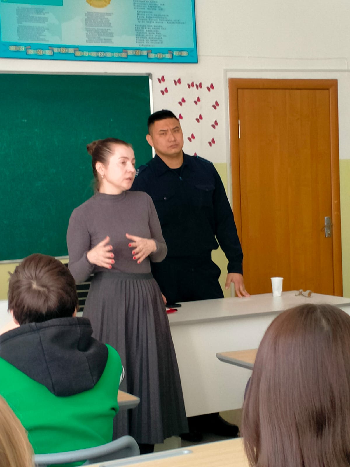 06.03.2025ж. Жасөспірімдер арасында ішімдік, электронды сигаретті пайдаланбаудың алдын алу мақсатында Алматы қалалық наркологиялық медико-әлеуметтік сауықтыру орталығының дәрігер-наркологы А.А.Трубникова, мектеп инспекторы Н. Тұратай мен 7-10 сынып оқушылары арасында кездесу болып өтті. Дәріс барысында, алкоголь - адамды уландыратын зат екендігін және ол әртүрлі химиялық қоспалардан тұратындығын, егер оны көп мөлшерде пайдалансаң, адам ағзасын біртіндеп уландыра бастайтындығын баса айтып өтті.