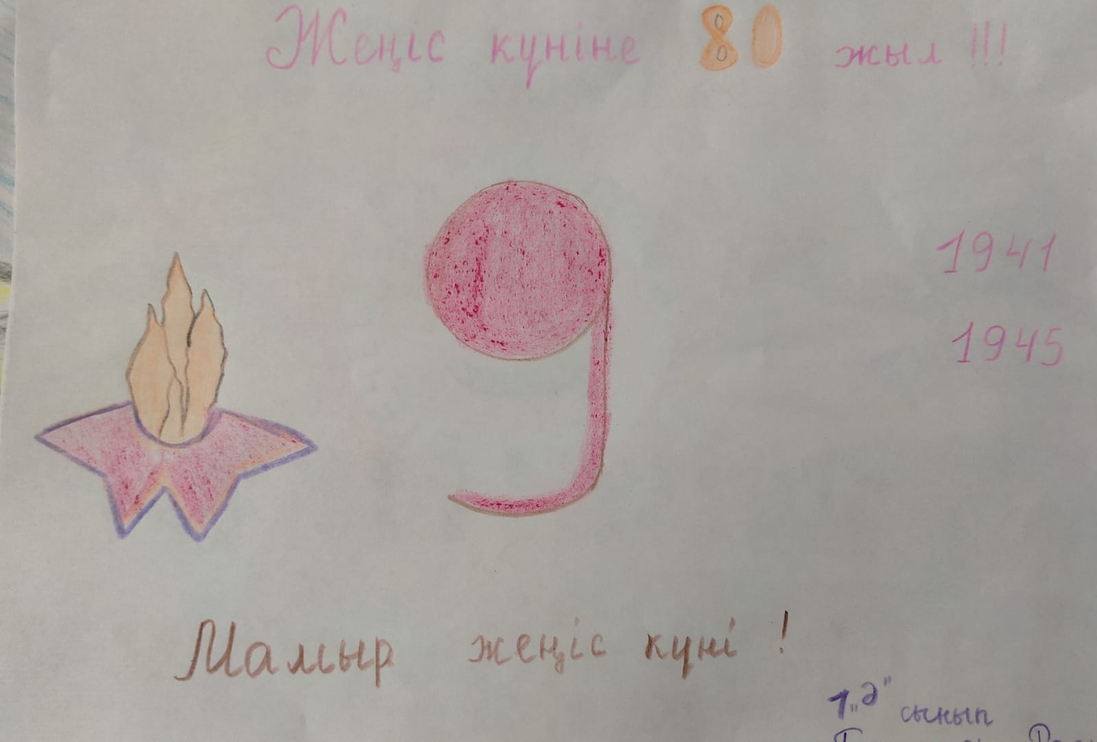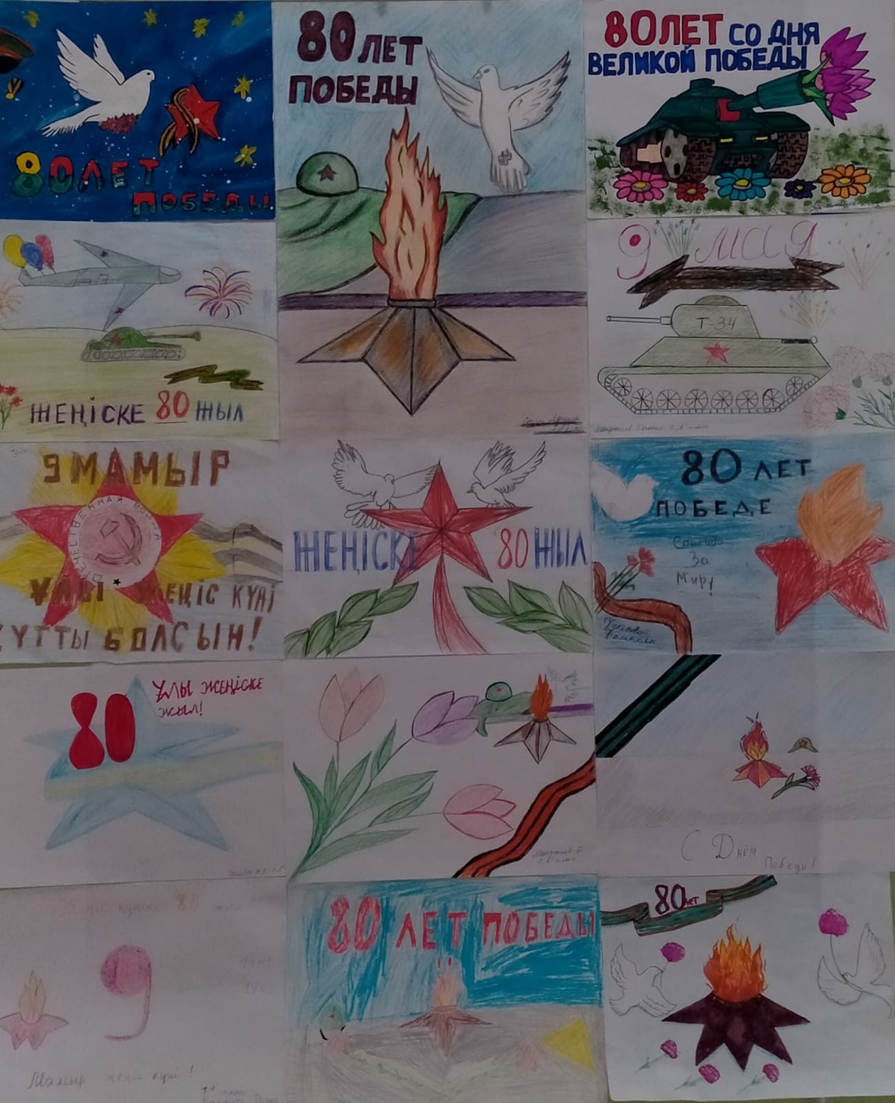 05 май 2025 0 1 2 3 4 5 ҰЛЫ ЖЕҢІСКЕ 80 ЖЫЛ Бастауыш сынып оқушыларының Ұлы Жеңстің 80 жылдығына арнап салған суреттері