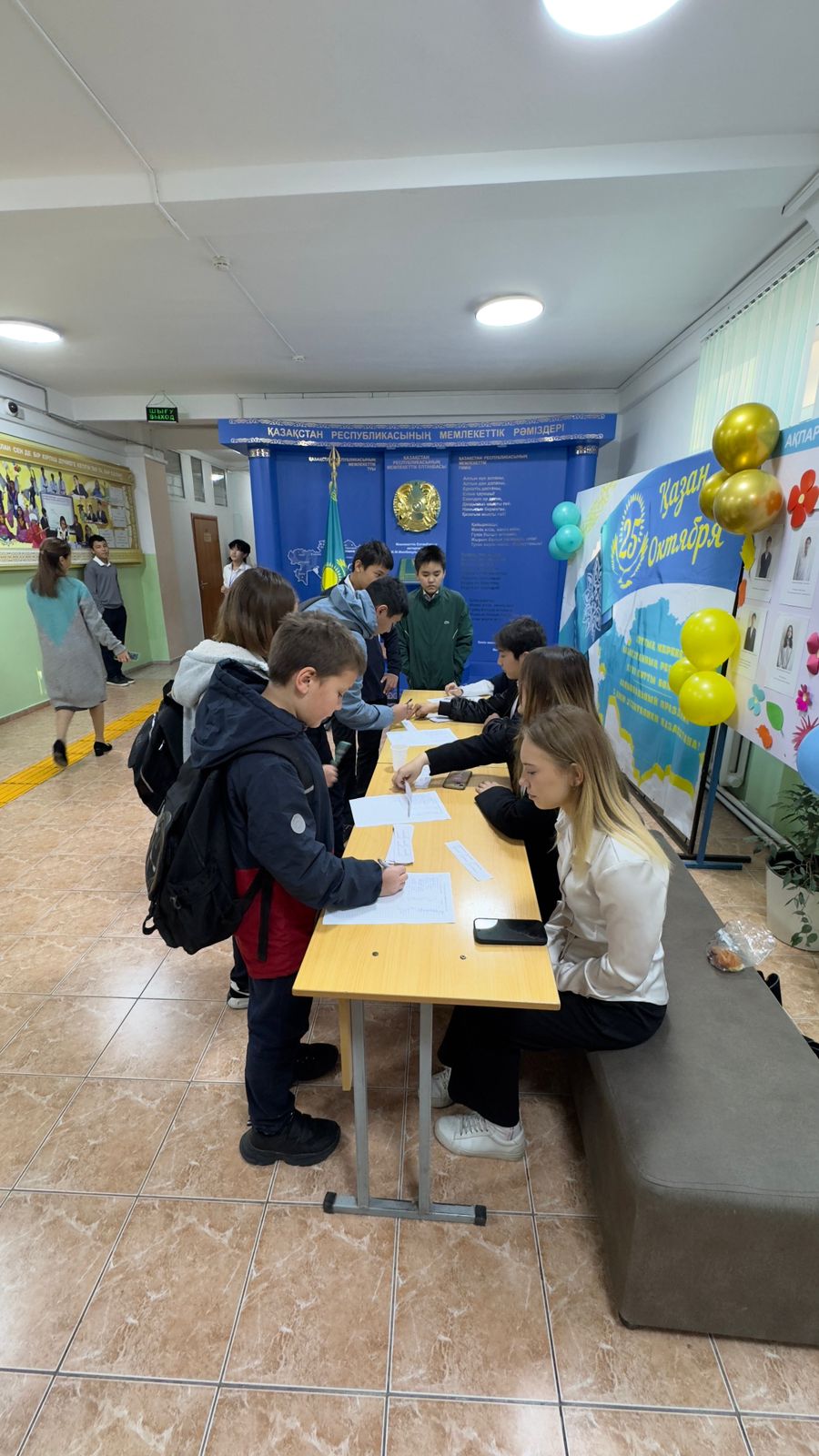 17 октябрь 2025 0 1 2 3 4 5 Өзін-өзі басқару ұйымының Президентін сайлау 17.10.2025ж. Мектеп оқушылары арасында мектепішілік өзін-өзі басқару ұйымының Президентін сайлауы өтті. Нәтижесінде сайлау бюллетені арқылы көп ұпай жинаған 9 «А» сынып оқушысы Бақытқызы Айзат сайланды.