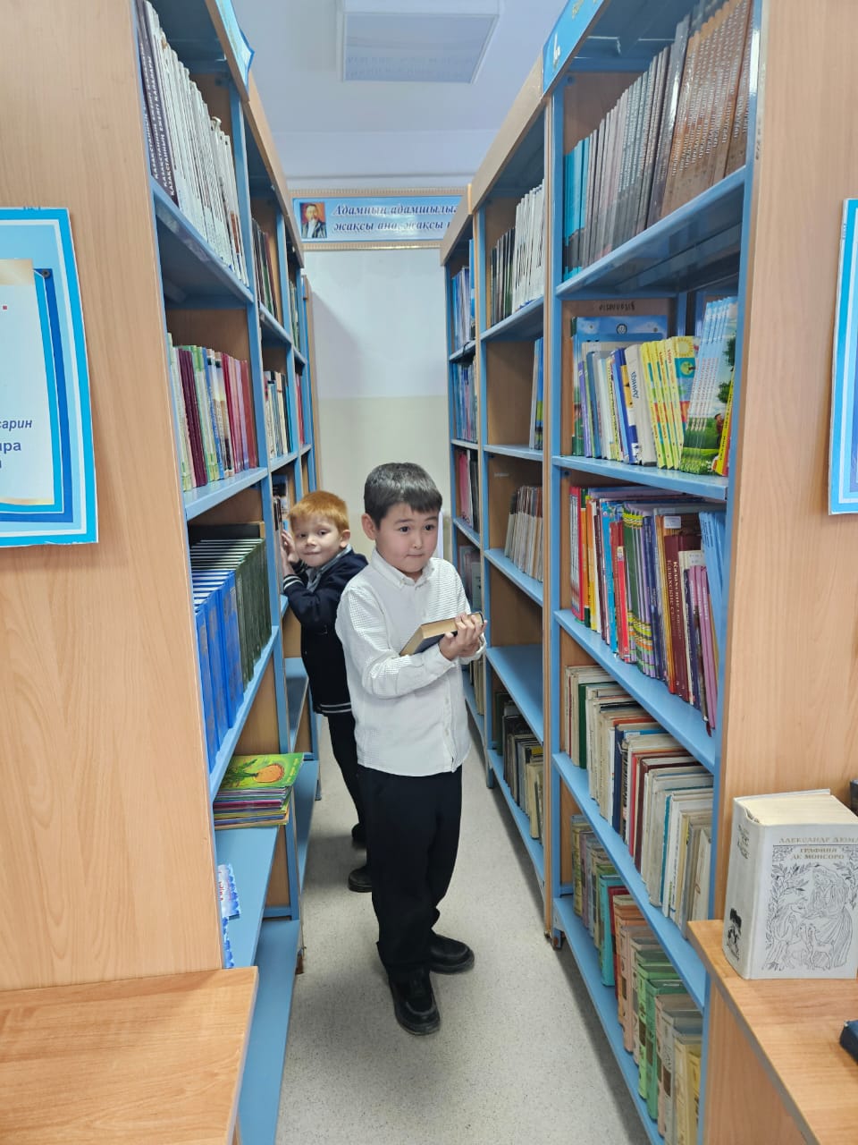 2025-2026 оқу жылының қыркүйек айында «Балалар кітапханасы» жобасы аясында бастауыш сынып оқушыларына «Кітапхана – білім ордасы» атты мектеп кітапханасына саяхат ұйымдастырылды. Мақсаты: жас оқырмандарды кітапханамен таныстыра отырып, оқуға деген ,кітапқа деген құштарлығын арттыру. Кітапханаға жаңа оқырман тарту, жас оқырмандардың ой-өрісін дамыту.