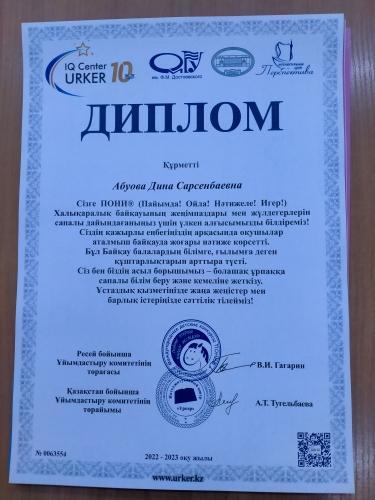 19 январь 2023 0 1 2 3 4 5 ҰСТАЗ ЖЕТІСТІГІ "ПОНИ" Халықаралық байқауына жеңімпаздар мен жүлдегерлер дайындағаны үшін марапатталды...