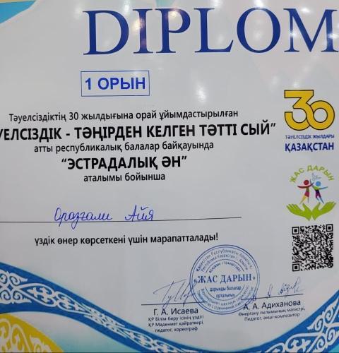 20 декабрь 2021 0 1 2 3 4 5 Республикалық эстрадалық ән байқауы "Тәуелсіздік-тәңірден келген тәтті сый" атты республикалық эстрада ән байқауында 1 "А" сынып оқушысы Оразғали Айя 1 орынды иеленді. Жетекшісі Доскожанова Назымгуль Азимбаевна.