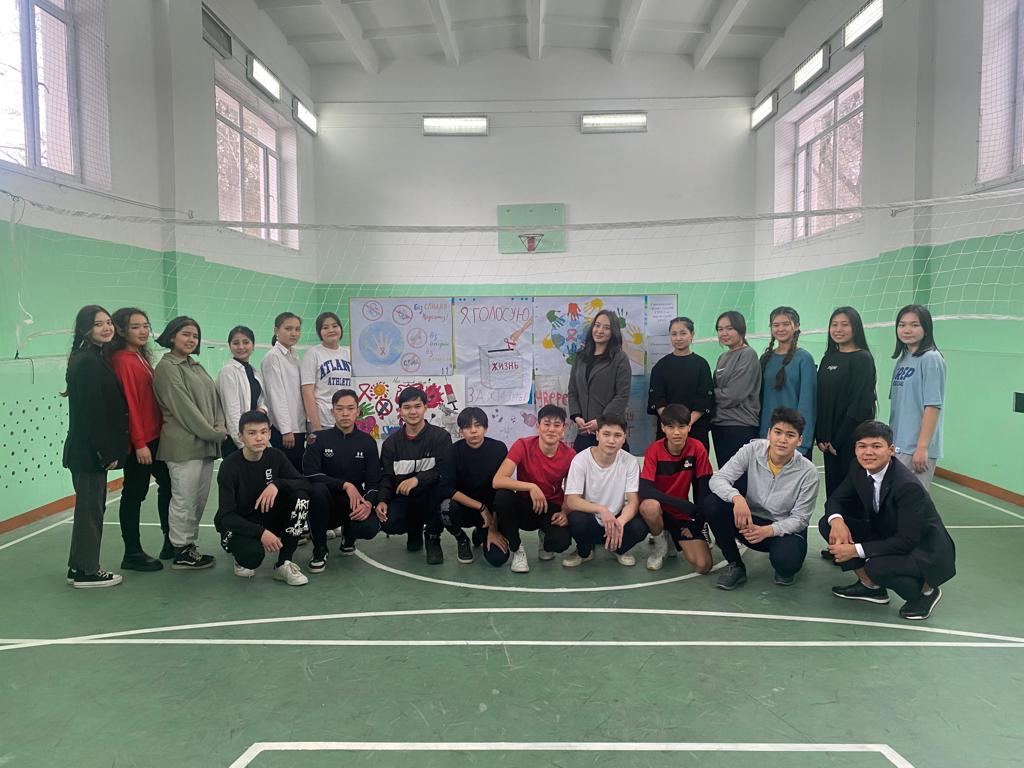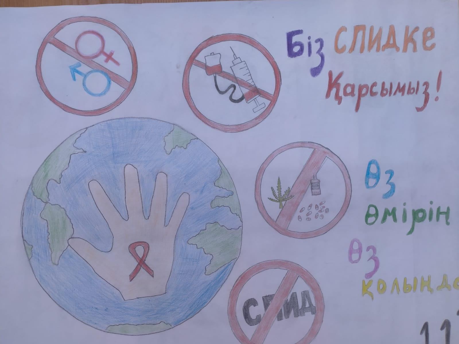 01 декабрь 2022 0 1 2 3 4 5 "1 желтоқсан - Дүниежүзілік СПИД-ке қарсы күрес күні" "Салауатты өмір салтын қолдаймыз" атты ұранмен 9-11 сынып оқушылары арасында баскетболдан жарыс болып өтті. Сонымен қатар "Біз СПИД-ке қарсымыз" тақырыбында оқушылар плакатқа суреттер салды.