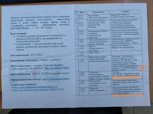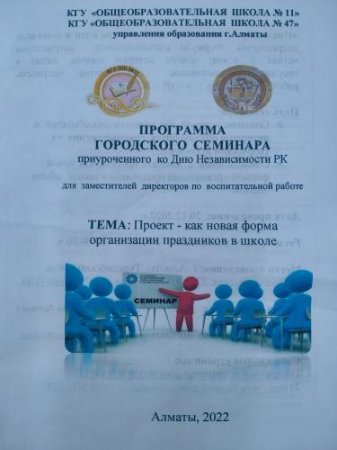 Алматы қаласы, Түрксіб ауданы №11 жалпы білім беретін мектеп пен бірлескен Қазақстан Республикасының Тәуелсіздік күніне арналған семинар. Мақсаты: