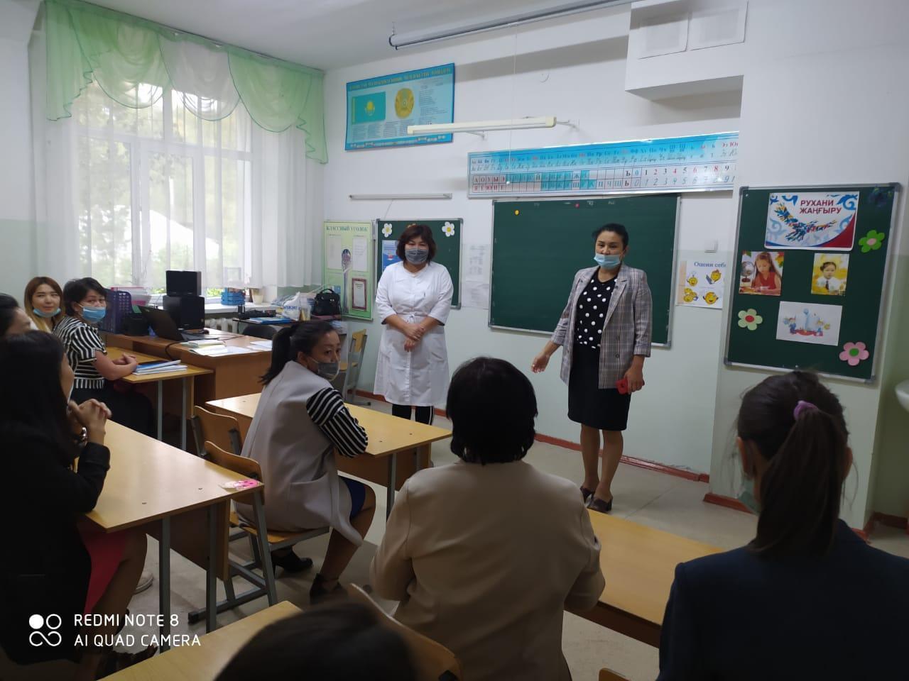 2021-2022 оқу жылында білім беру ұйымдарында коронавирустық инфекцияның алдын алу жөніндегі санитариялық-эпидемияға қарсы және санитариялық-профилактикалық іс-шараларды жүргізу туралы, мектебіміздің медбикесі Н.М.Пакисбаева педагогтарға санитариялық-эпидемиологиялық талаптарды сақтау туралы нұсқама беріп, нұсқама өткізу журналына жазып алды.