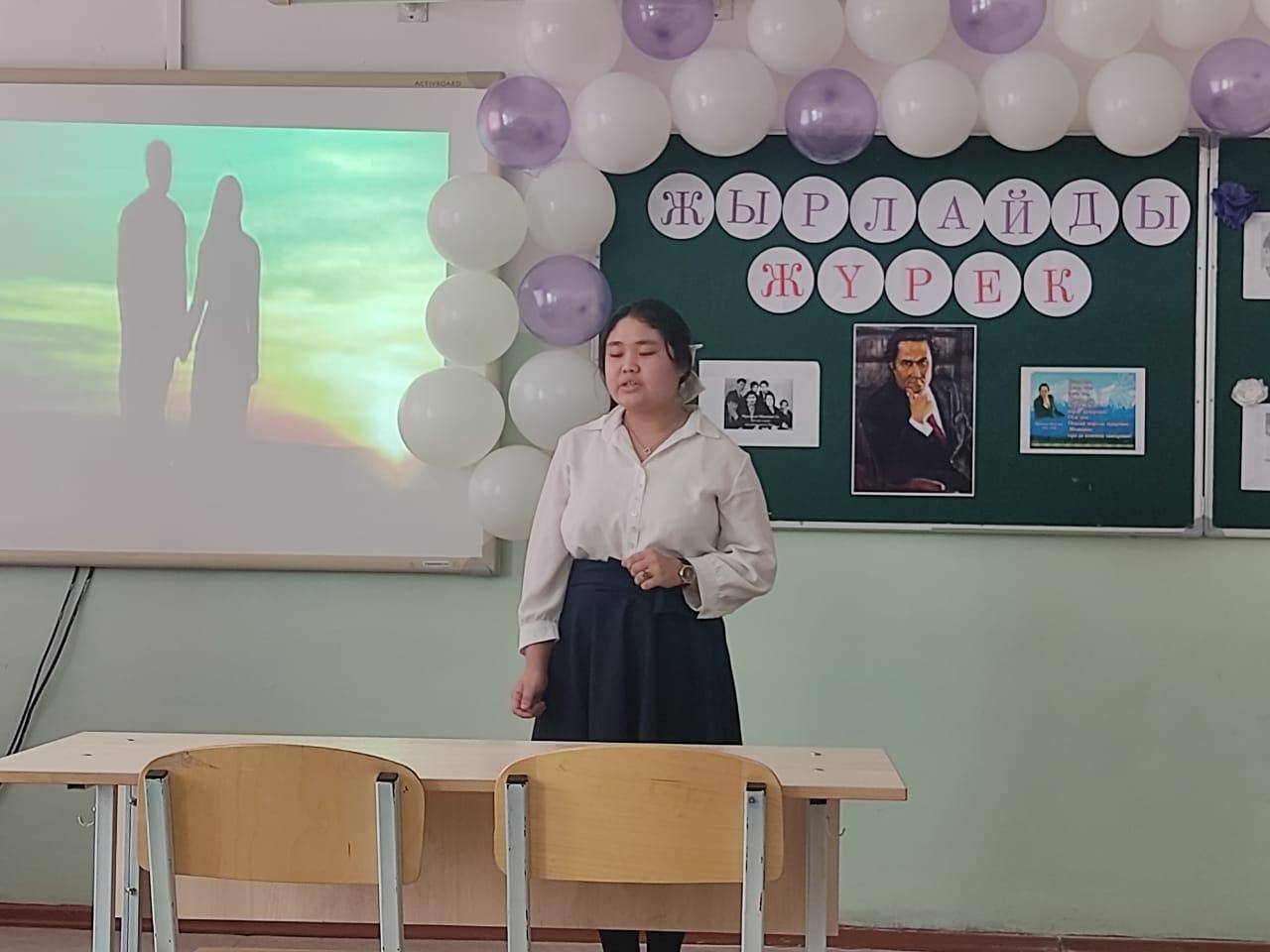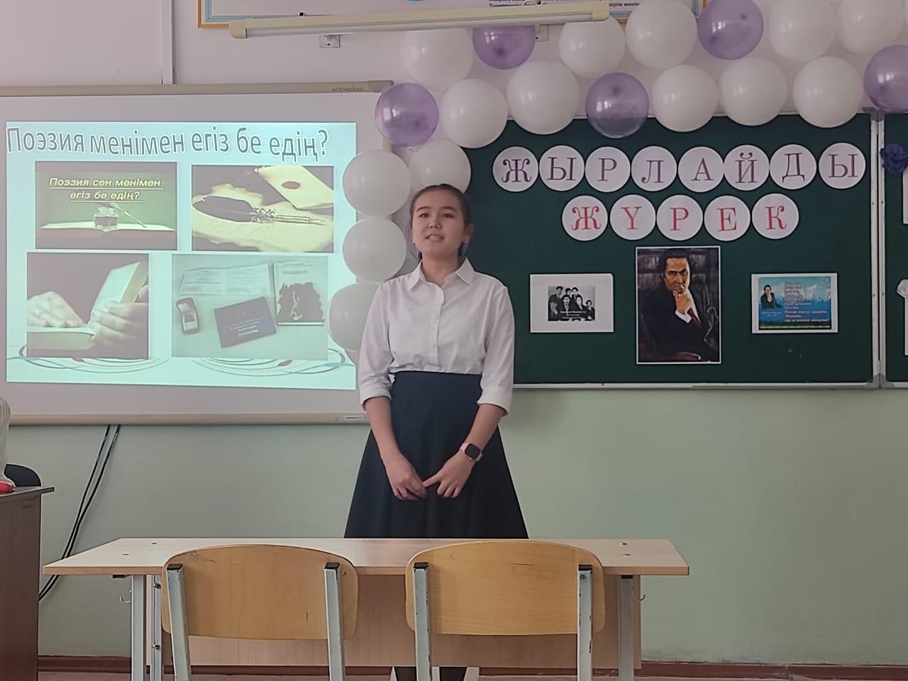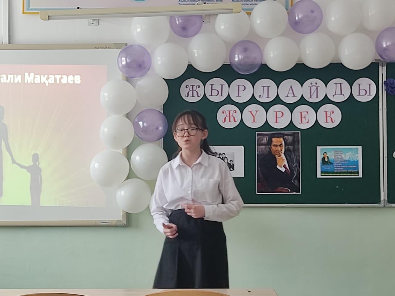 Мұқағали Мақатаевтың шығармаларына арналған «Жырлайды жүрек» атты тақырыпта 7-11 сынып оқушылары арасында поэзиялық кеші болып өтті. Мақсаты: оқушыларды ақын өлеңдерін жатқа мәнерлеп, көркем оқуға дағдыландыру. Өнерге , Отангға, табиғатқа деген құштарлықтарын дамыту. Кеш барысында балалар Мұқағали Мақатаевтың өмірі мен шығармашылығына көрініс көрсету арқылы шолу жасады.