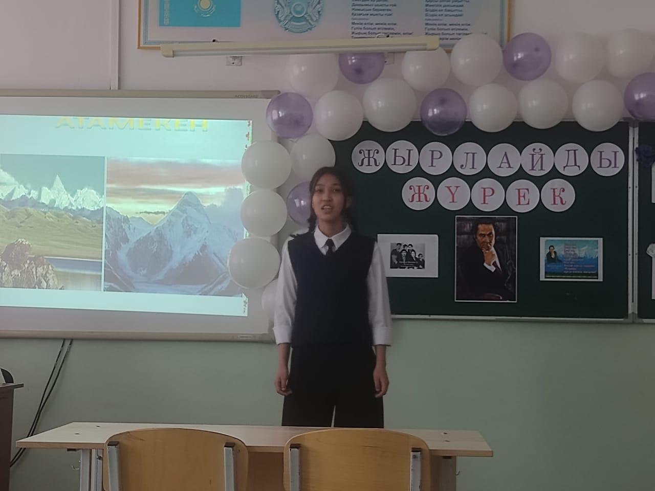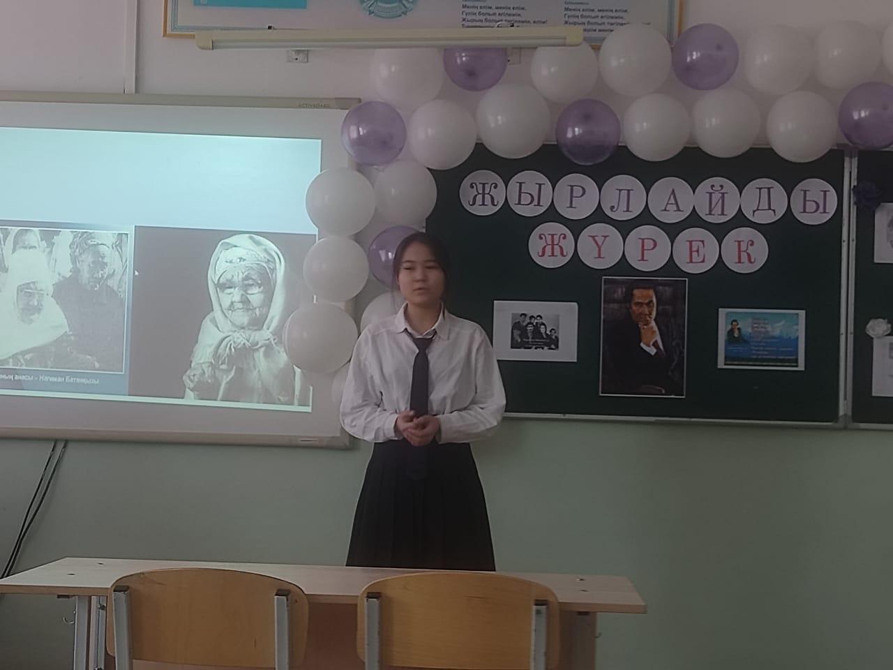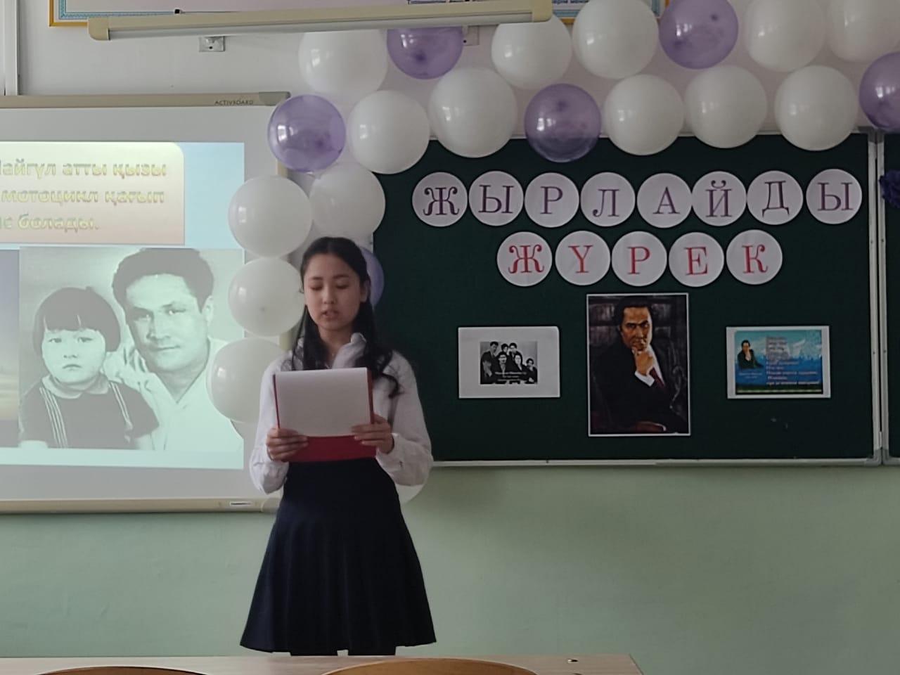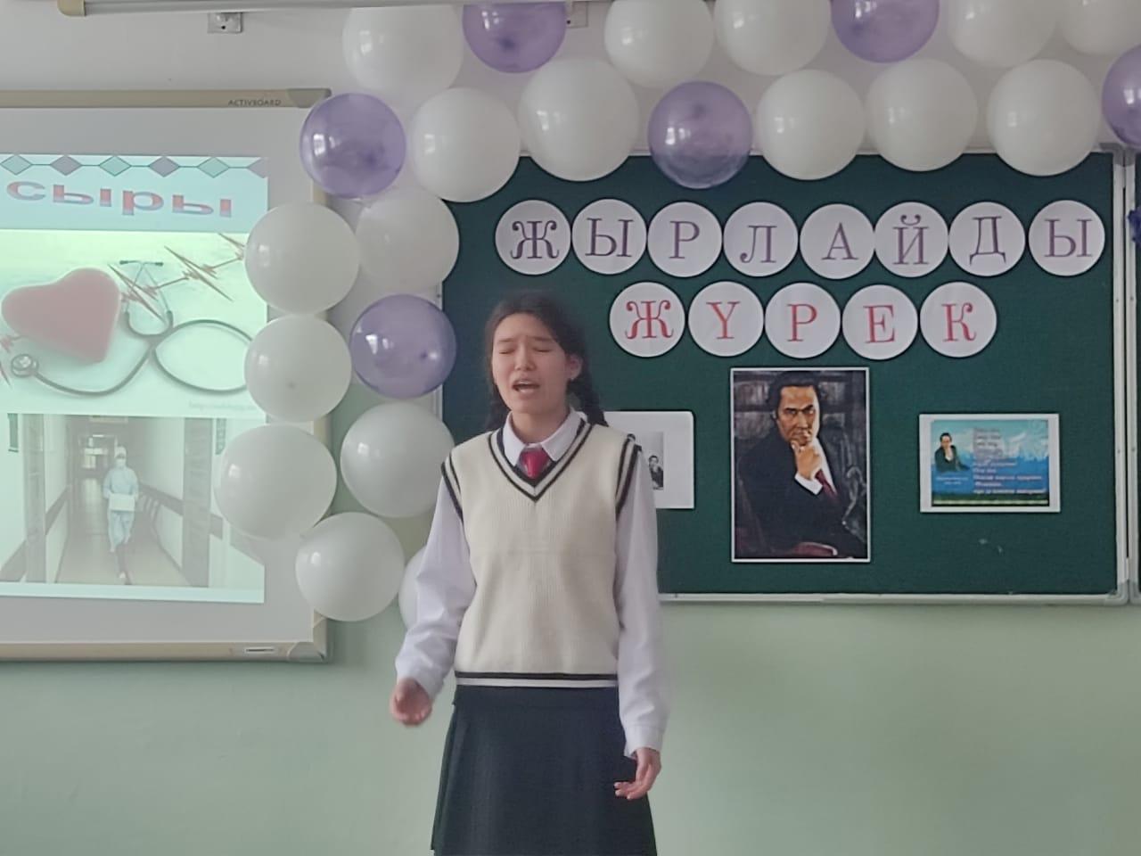 Мұқағали Мақатаевтың шығармаларына арналған «Жырлайды жүрек» атты тақырыпта 7-11 сынып оқушылары арасында поэзиялық кеші болып өтті. Мақсаты: оқушыларды ақын өлеңдерін жатқа мәнерлеп, көркем оқуға дағдыландыру. Өнерге , Отангға, табиғатқа деген құштарлықтарын дамыту. Кеш барысында балалар Мұқағали Мақатаевтың өмірі мен шығармашылығына көрініс көрсету арқылы шолу жасады.