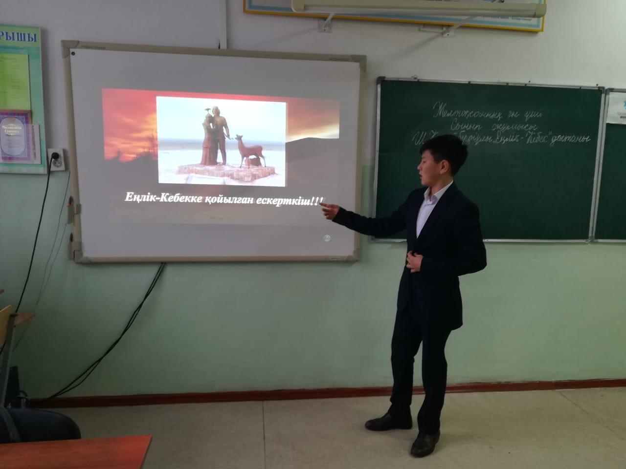 20 декабрь 2019 0 1 2 3 4 5 8 "Ә" сынып Қазақ әдебиеті Күні: 13.12.2019 ж. Пән мұғалімі: Дәукен М.Қ. Сабақтың тақырыбы: Ш. Құдайбердіұлы "Еңлік-Кебек" дастаны Сабақтың мақсаты: 8.1.3.1. әдеби шығарманың жанрына байланысты сюжеттік желілерін, эпилог, прологтарды анықтау.