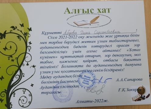 Бастауыш сынып мұғалімі Абуова Д.С.