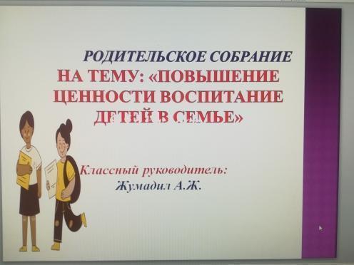 27 ноябрь 2021 0 1 2 3 4 5 "Директорлық сенбі-ата-ана үні!" 27.11.2021ж. Онлайн түрде 9 "А" сынып ата-аналарына арналған жиналыс болып өтті. Сынып жетекшісі: Жұмаділ А.Ж.