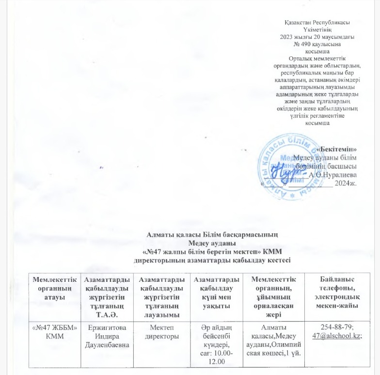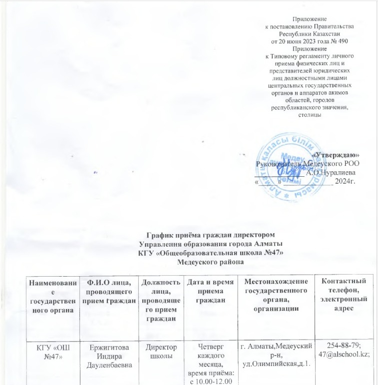 27 декабрь 2024 0 1 2 3 4 5 График приема граждан КГУ ОШ №47 за 2024-2025 уч.год Азаматтарды қабылдау кестесі 2024-2025 оқу жылы График приема граждан за 2024-2025 учебный год