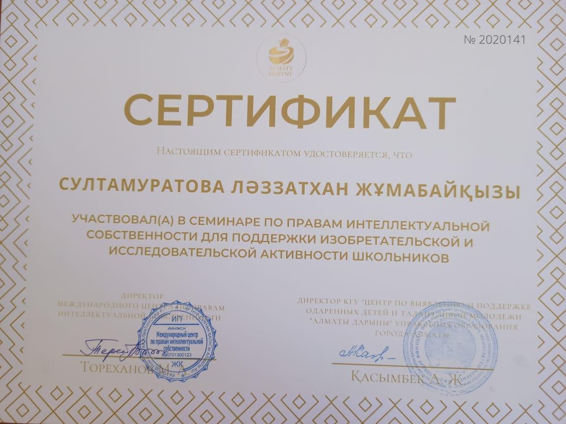 Султамуратова Ләззатхан Жұмабайқызына берілді.