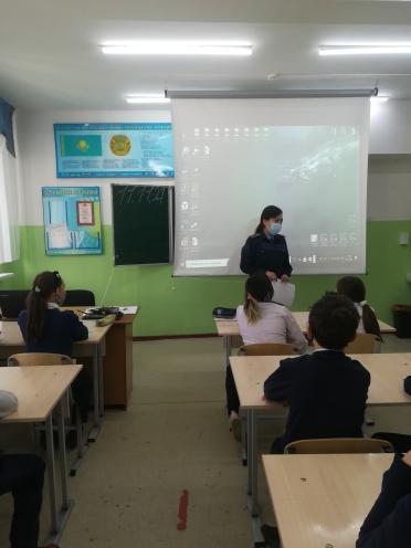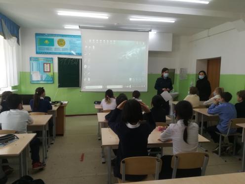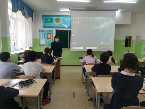 Алматы қаласының Білім басқармасы Қазақстан Республикасының Білім және ғылым министрлігінің хатына сәйкес 2021 жылғы 20 қазан-20 қараша аралығында Дүниежүзілік балалар күніне арналған "Бала құқығы-адам құқығы" атты республикалық айлық өтуіне орай мектеп инспекторы Н.Б. Кумисбаева мен оқушылар арасында кездесу болып өтті.