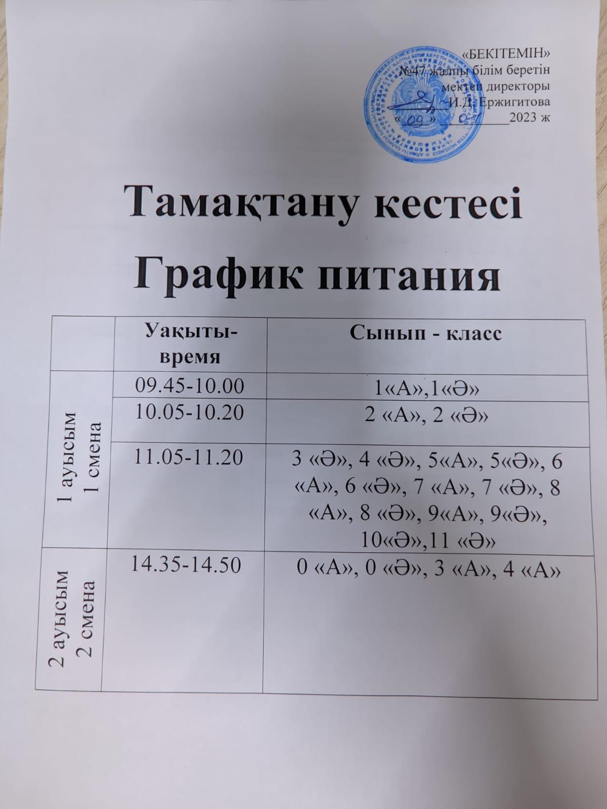 №47 ЖББМ асханасына шектеу іс-шараларын, оның ішінде карантинді енгізу кезеңінде тамақтану орнына қойылатын талаптар бойынша