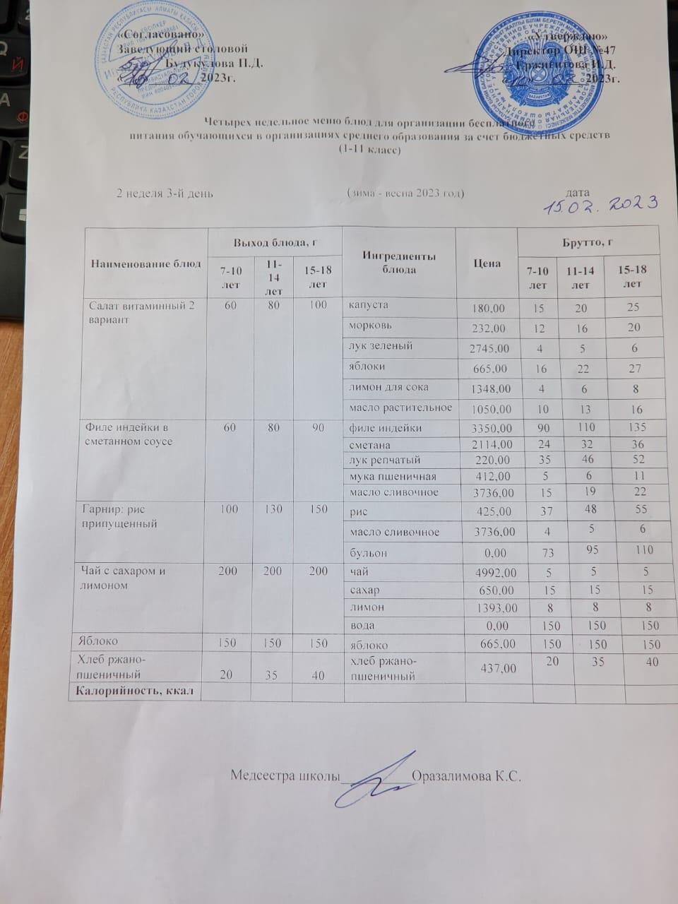 Бюджет қаражаты есебінен орта білім беру ұйымдарында білім алушыларды тегін тамақтандыруды ұйымдастыру үшін төрт апталық ас мәзірі/ Четырехнедельное меню блюд для организации бесплатного питания обучающихся в организациях среднего образования за счет бюджетных средств