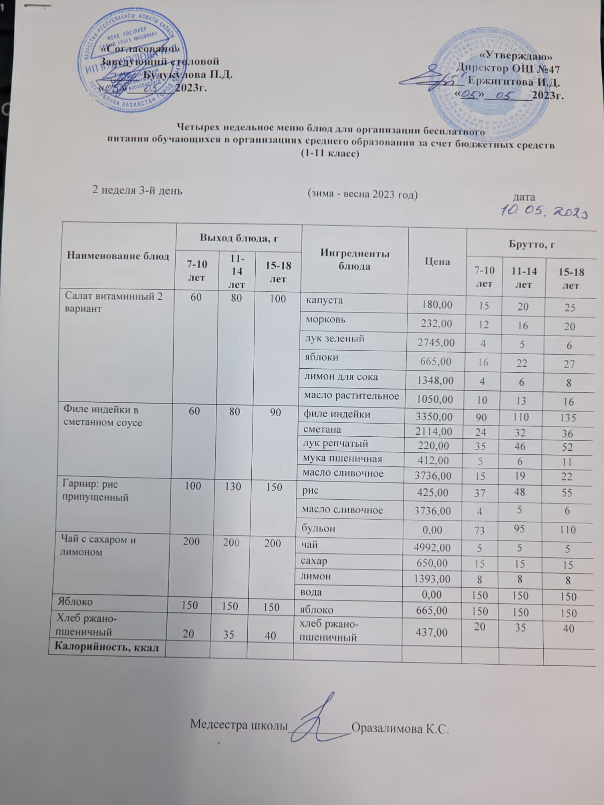 Бюджет қаражаты есебінен орта білім беру ұйымдарында білім алушыларды тегін тамақтандыруды ұйымдастыру үшін төрт апталық ас мәзірі/ Четырехнедельное меню блюд для организации бесплатного питания обучающихся в организациях среднего образования за счет бюджетных средств