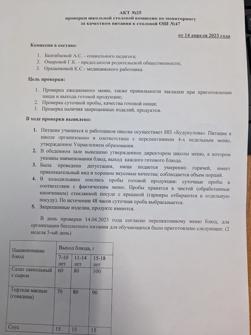 14 апрель 2023 0 1 2 3 4 5 Тамақтану сапасына мониторинг жүргізу актісі Тамақтану сапасына мониторинг жүргізу актісі