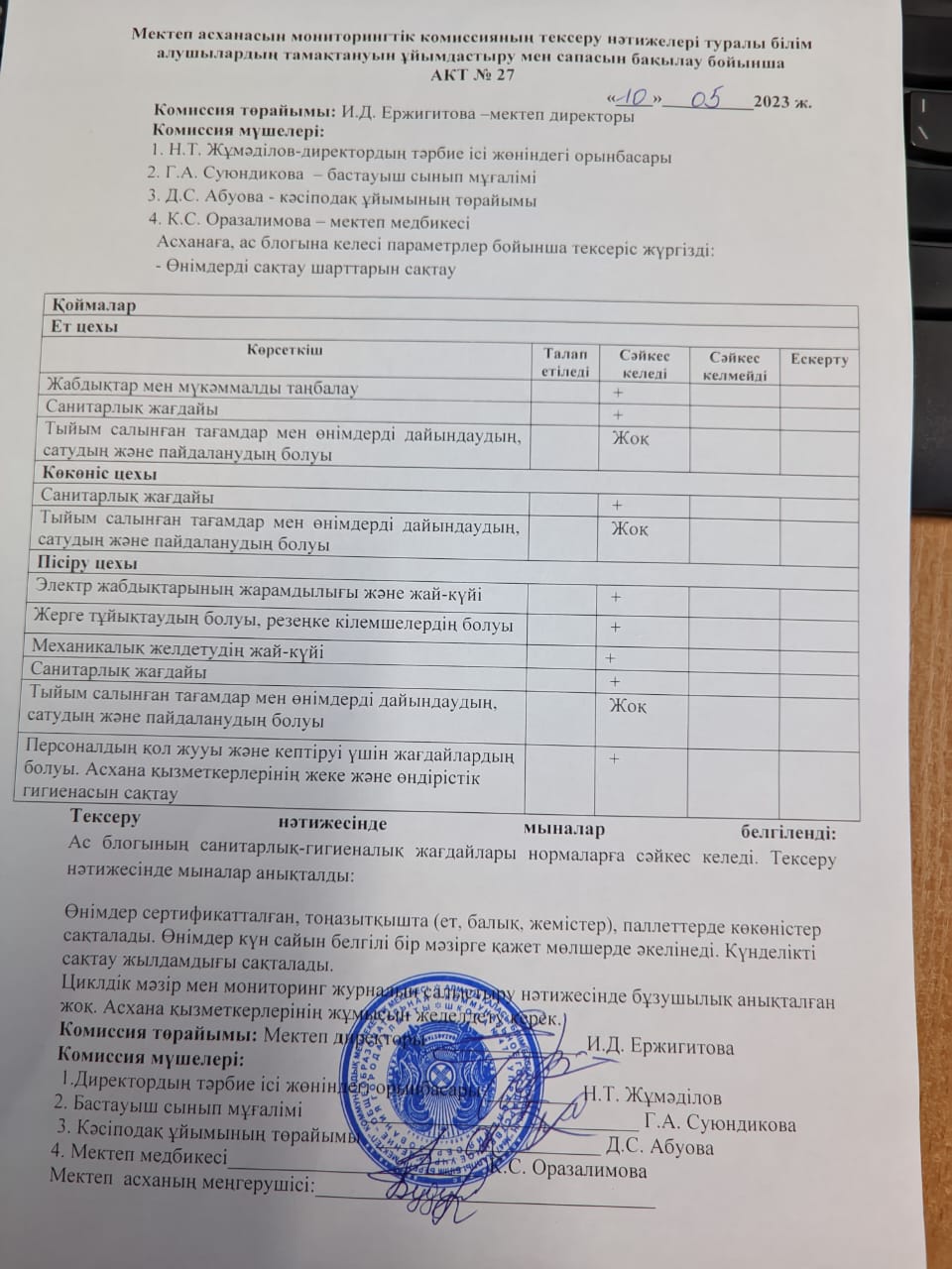 10 май 2023 0 1 2 3 4 5 Тамақтану сапасына мониторинг жүргізу актісі Тамақтану сапасына мониторинг жүргізу актісі