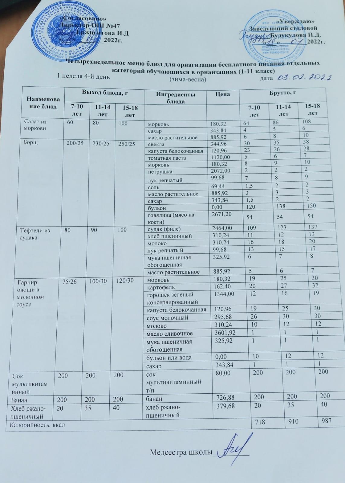 МЕНЮ (ЗИМА-ВЕСНА) 1 неделя 4 день (03.02.2022 г.)