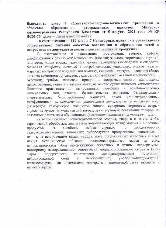 Глава 7 «Санитарно-эпидемиологических требований к объектам образования», утвержденных приказом Министра здравоохранения Республики Казахстан от 5 августа 2021 года № ҚР ДСМ-76.