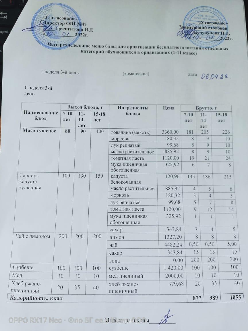 МЕНЮ (Зима- Весна) 1 неделя 3 день 06.04.2022 г.