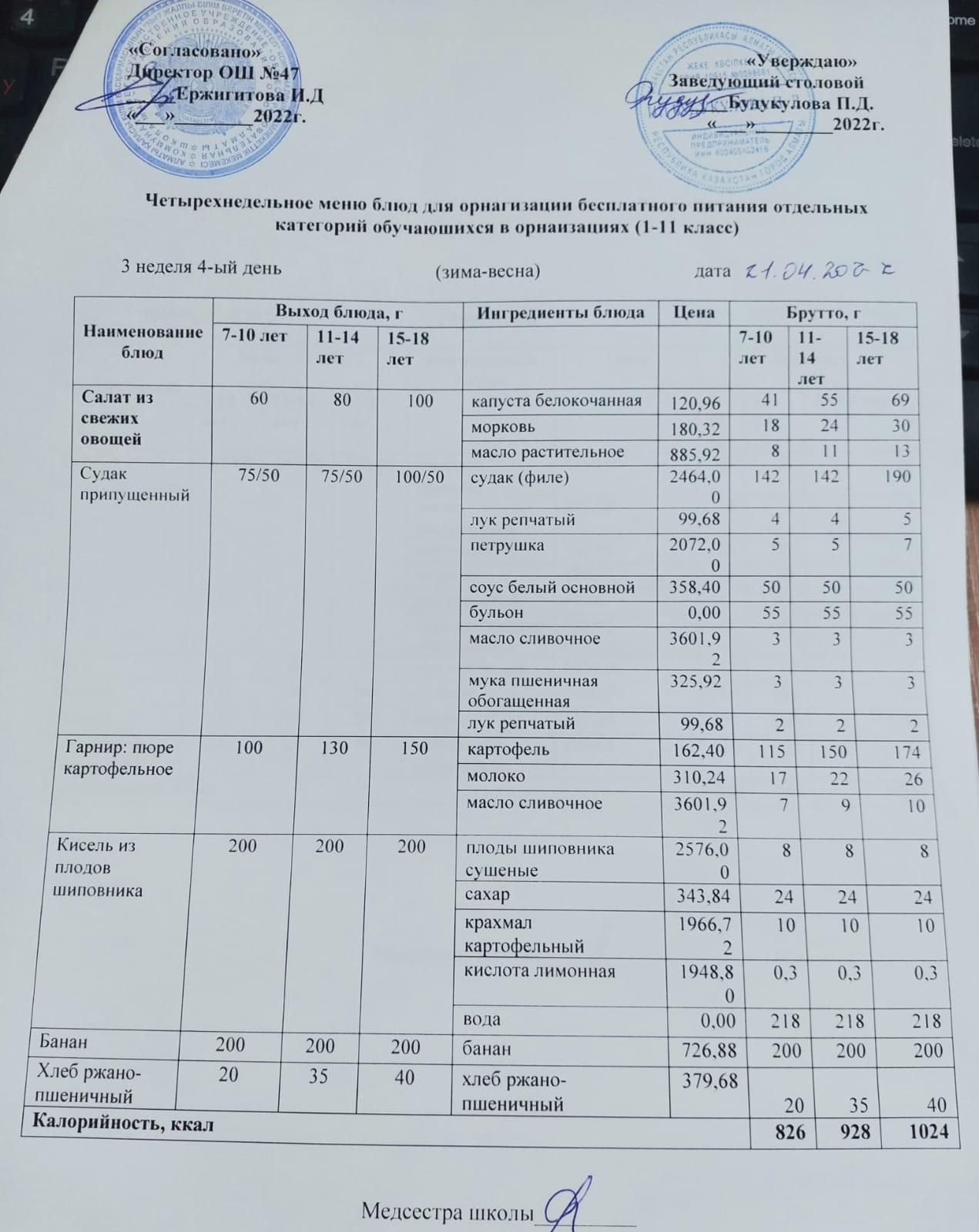 МЕНЮ (Зима- Весна) 3 неделя 4 день 21.04.2022 г.