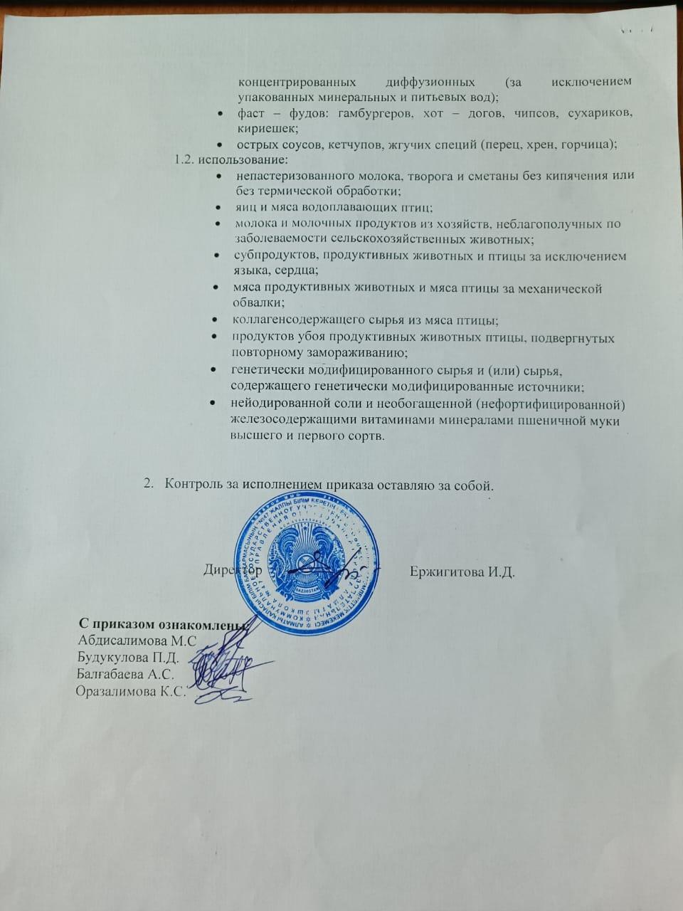 Приказ №5/1 "Об организации горячего питания учащихся в КГУ ОШ №47"