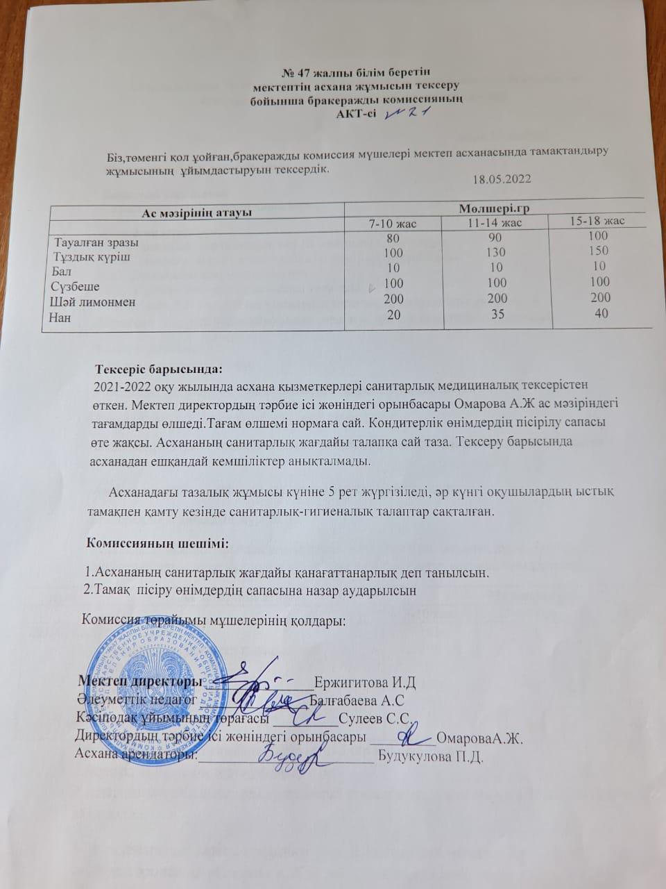 18 май 2022 0 1 2 3 4 5 Мектеп асханасындағы тағамның сапасы мен қауіпсіздігін бақылау АКТ-сі Мектеп асханасындағы тағамның сапасы мен қауіпсіздігін бақылау АКТ-сі