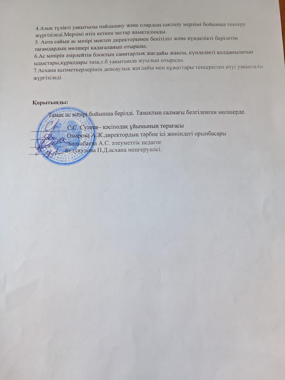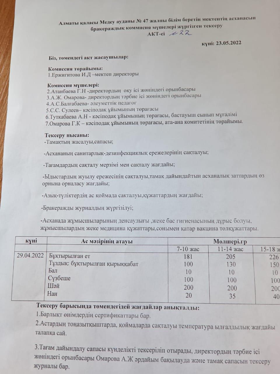 23 май 2022 0 1 2 3 4 5 Мектеп асханасындағы тағамның сапасы мен қауіпсіздігін бақылау АКТ-сі Мектеп асханасындағы тағамның сапасы мен қауіпсіздігін бақылау АКТ-сі