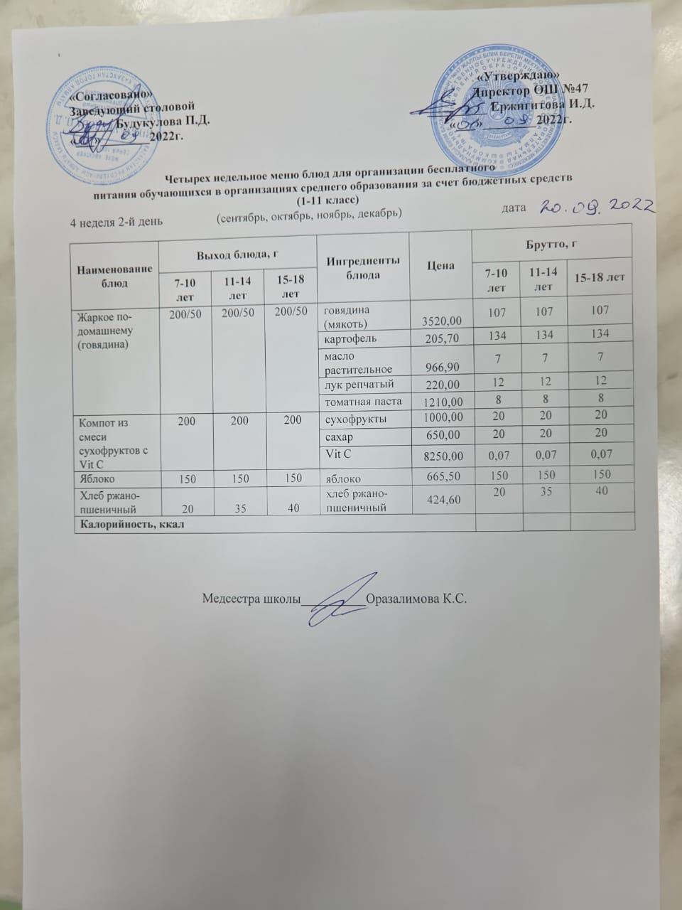 Ас мәзірі (қыс-көктем) 2- апта, 4-күн