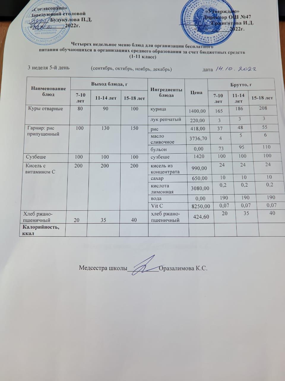 12 сентябрь 2022 Ас мәзірі 3 апта 1-күн