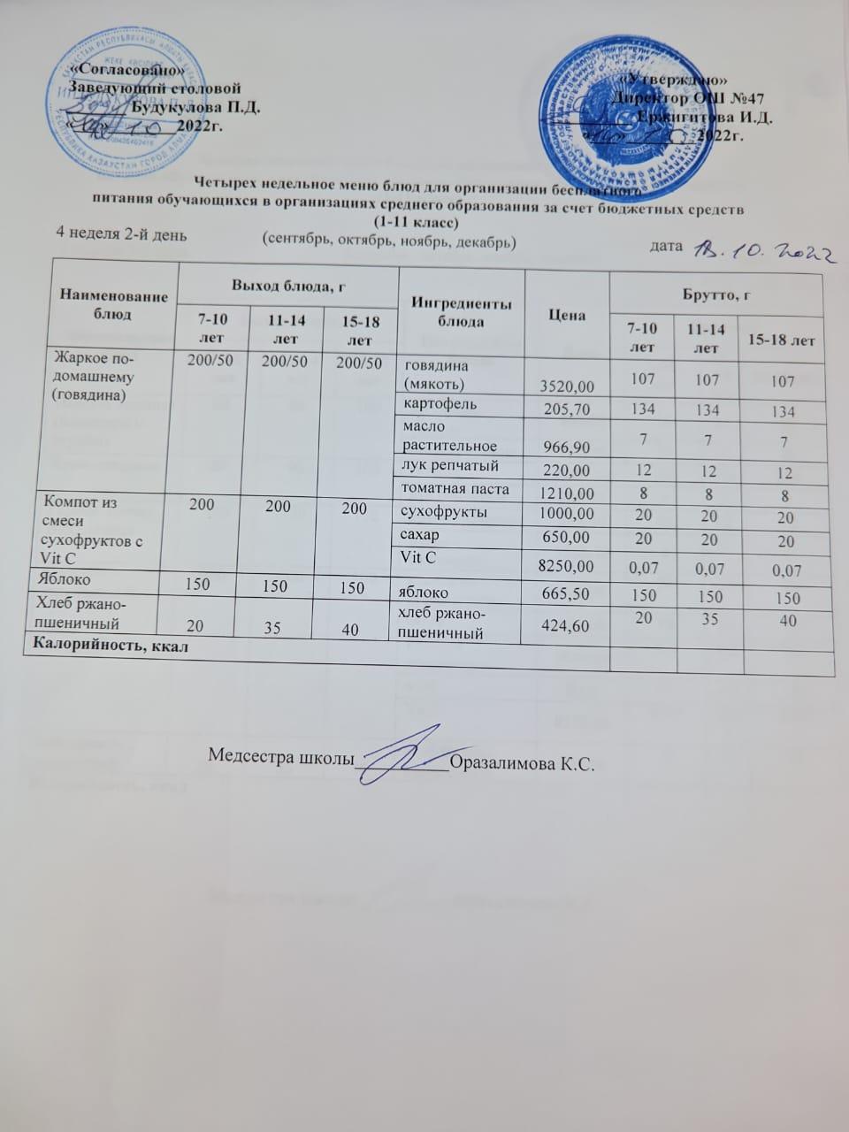 20 сентябрь 2022 Ас мәзірі 4 апта 2-ші
