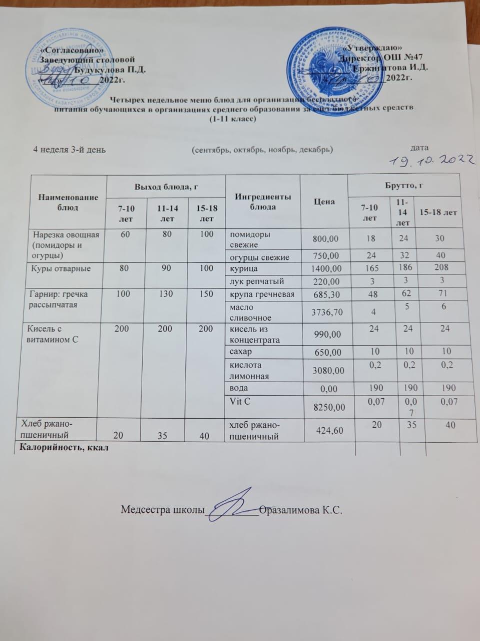 12 сентябрь 2022 Ас мәзірі 3 апта 1-күн