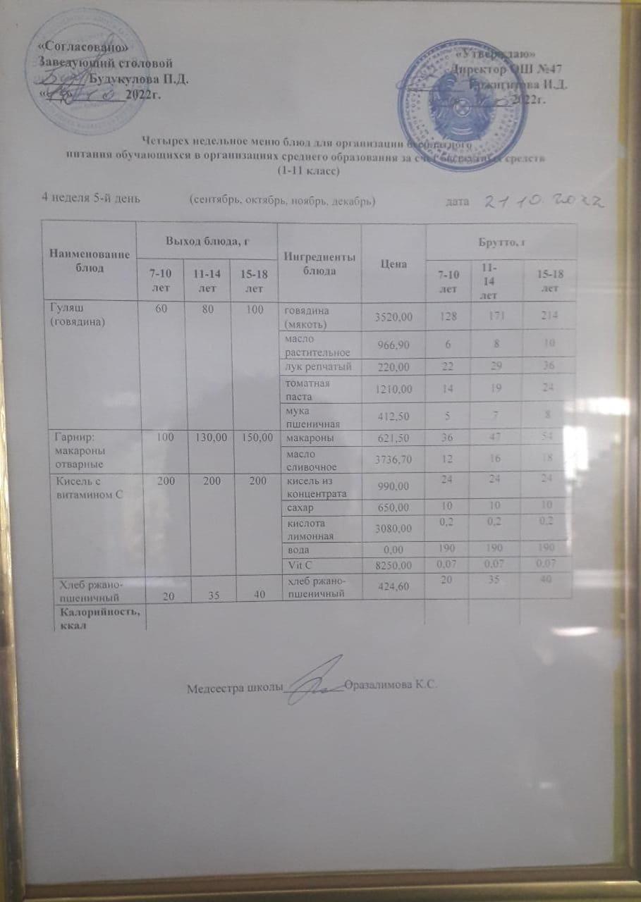 12 сентябрь 2022 Ас мәзірі 3 апта 1-күн