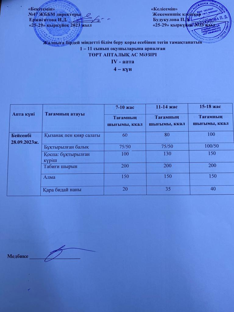 Ас мәзірі (қыс-көктем) 2- апта, 5- күн