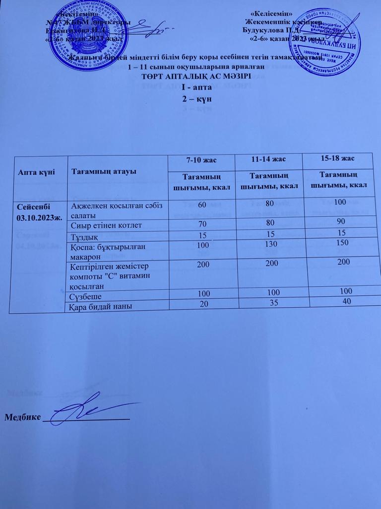 Ас мәзірі (қыс-көктем) 2- апта, 5- күн