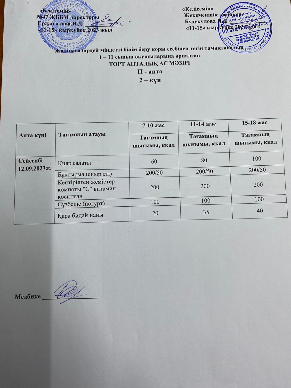 Ас мәзірі (қыс-көктем) 2- апта, 5- күн