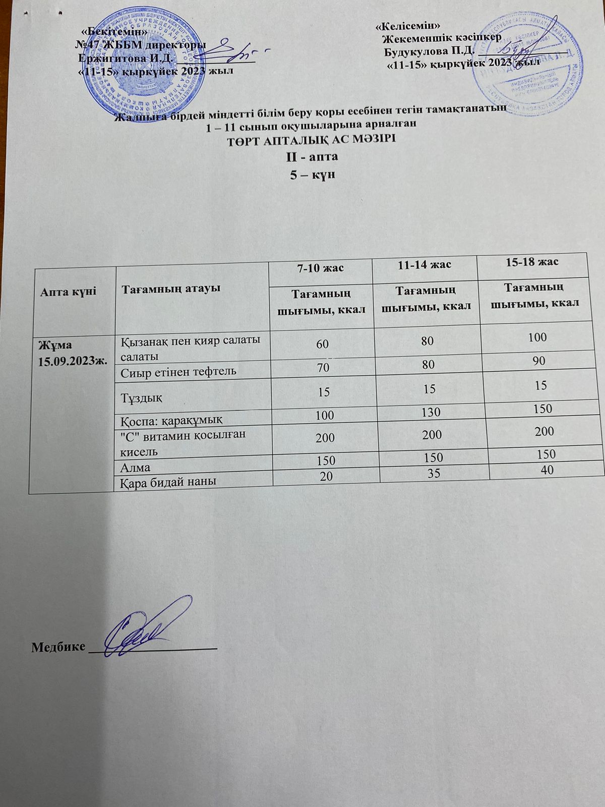 Ас мәзірі (қыс-көктем) 2- апта, 5- күн