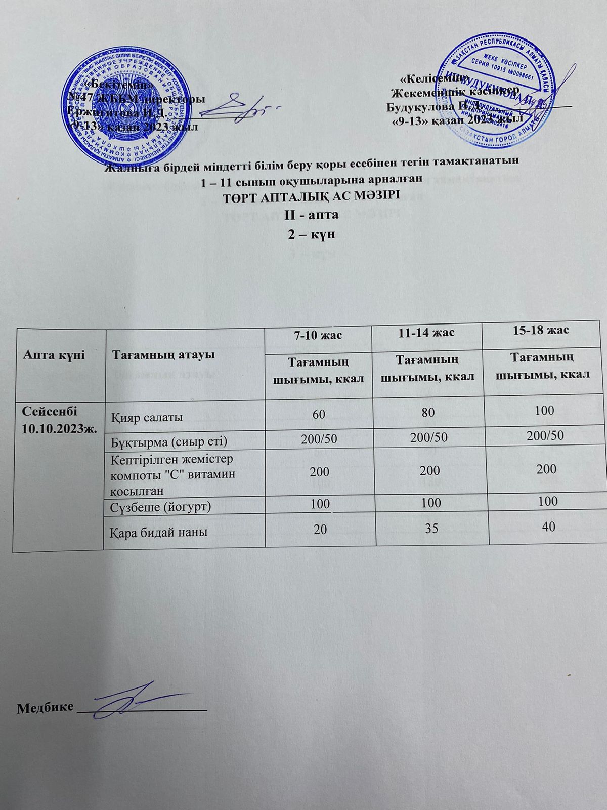 Ас мәзірі (қыс-көктем) 2- апта, 5- күн