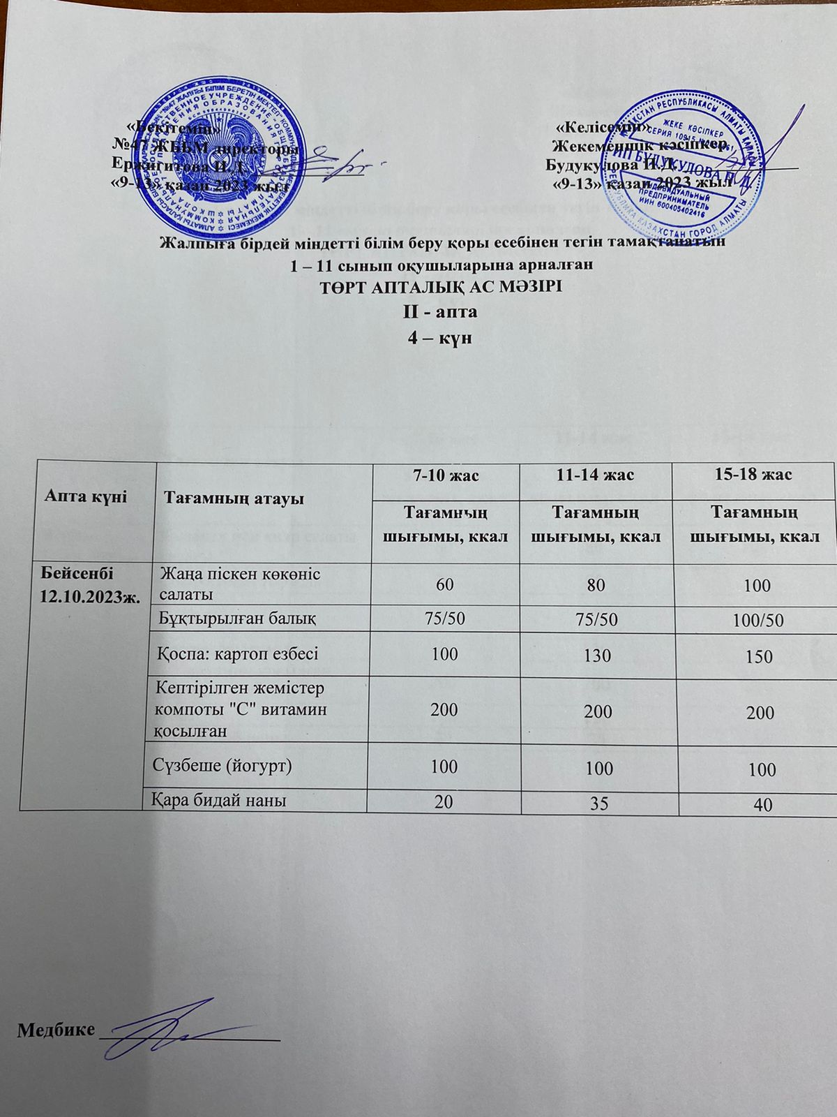 Ас мәзірі (қыс-көктем) 2- апта, 5- күн