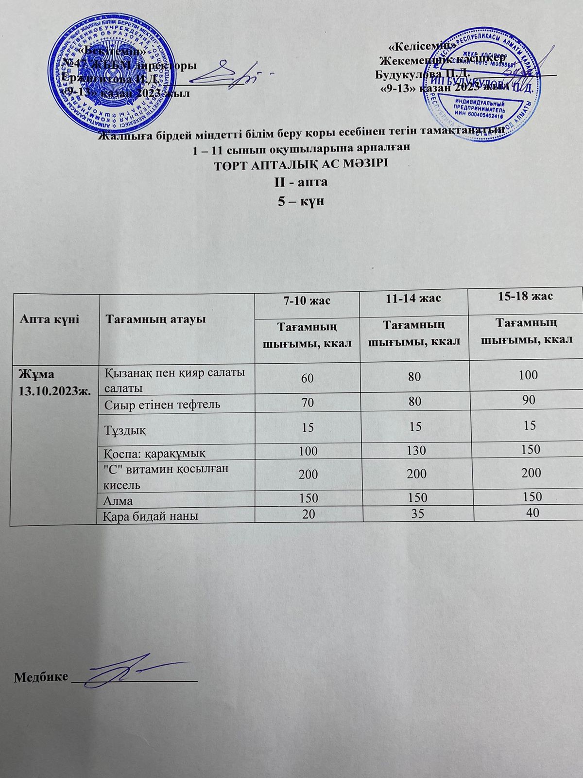 Ас мәзірі (қыс-көктем) 2- апта, 5- күн