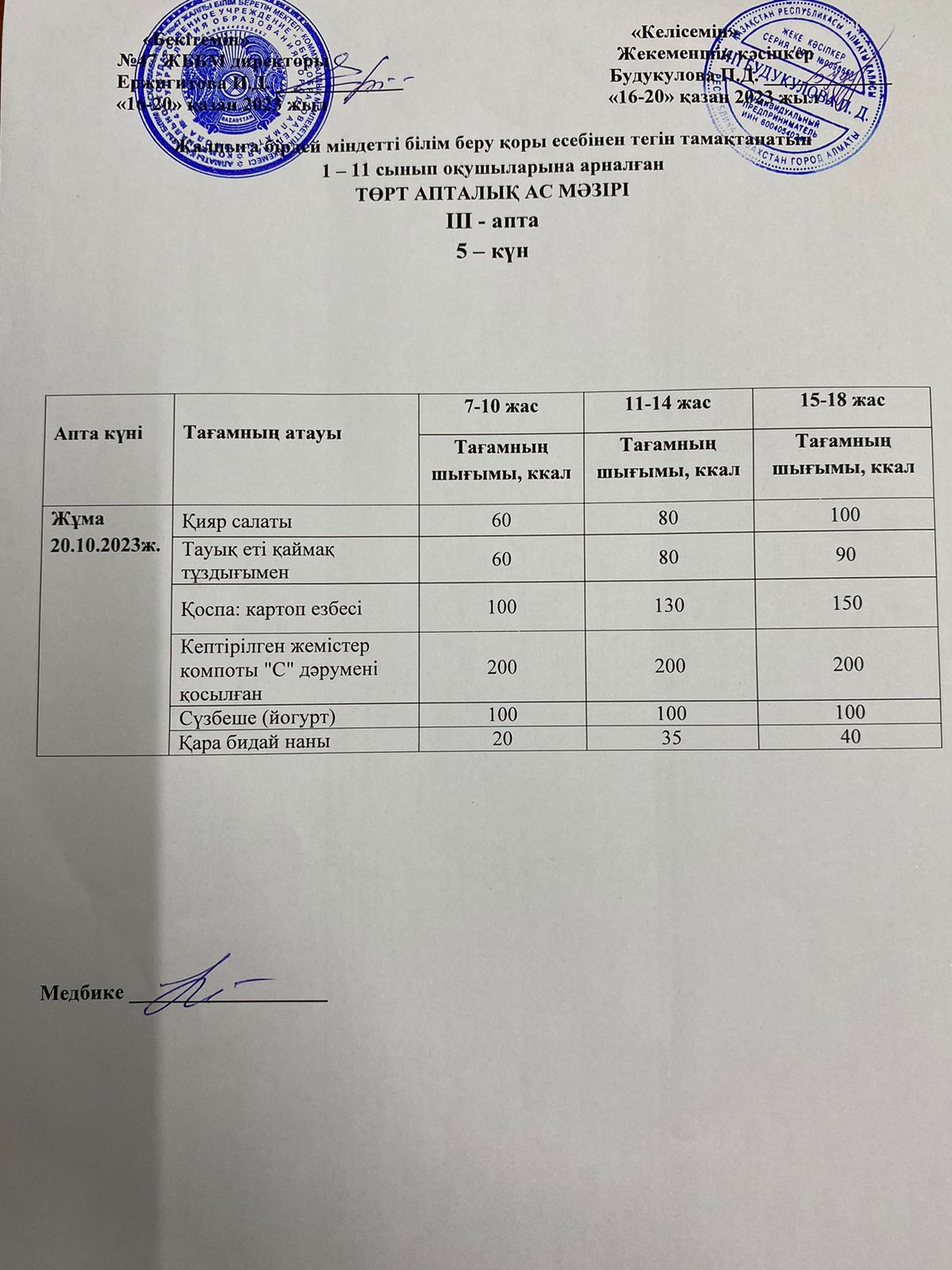Ас мәзірі (қыс-көктем) 2- апта, 5- күн